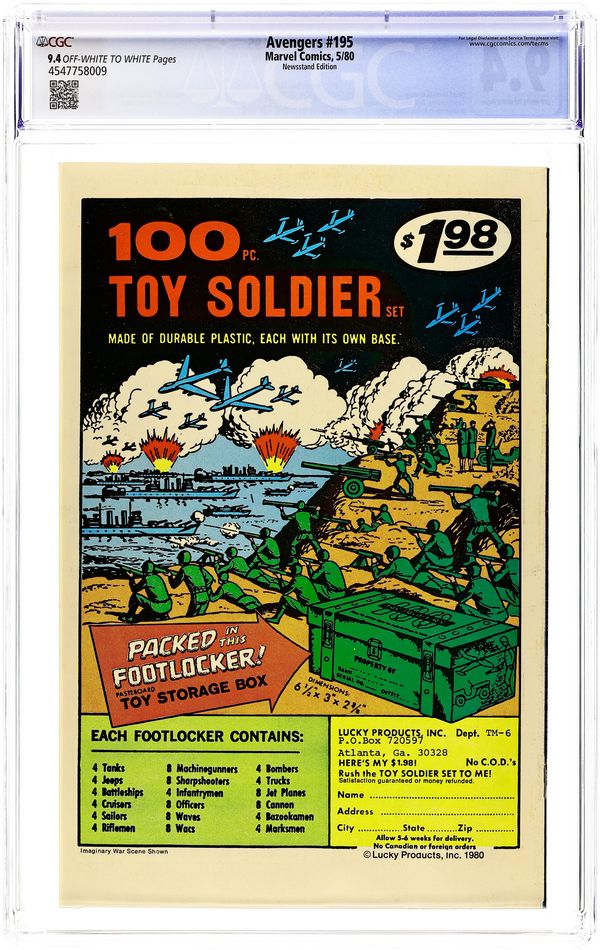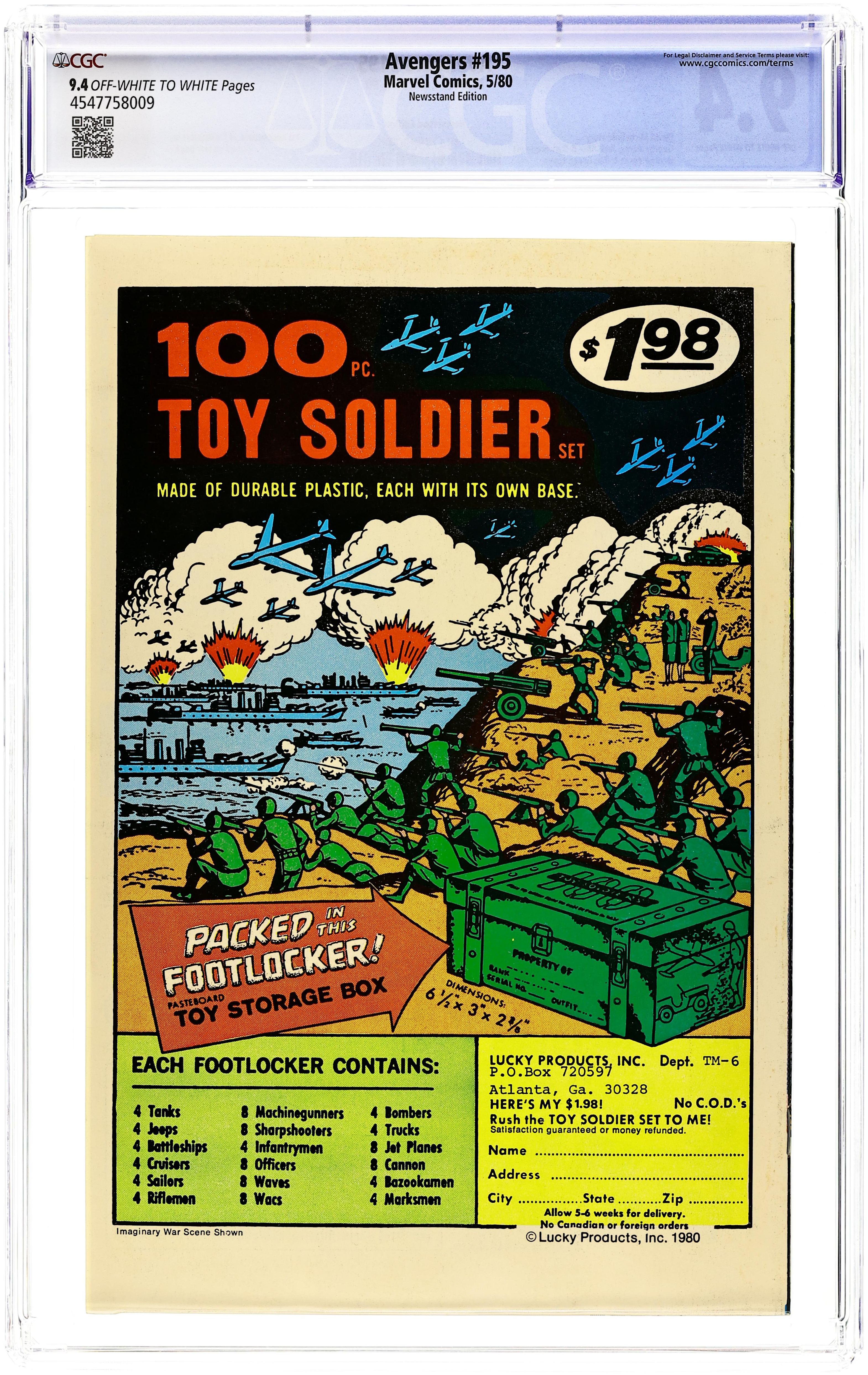 Ended May 13 2025 Winning Bid $38 Newsstand Edition. "Assault on a Mind Cage!" Guest-starring Ant-Man. Script by David Michelinie. Pencils by George Perez. Inks by Jack Abel and Dan Green. Cover by George Perez and Dan Green. The Wasp has taken it upon herself to invade the Solomon Institute and find out what's going on inside! Unfortunately though, it's been several hours since anyone's heard from her! So Yellowjacket and Ant-Man (aka Scott Lang) infiltrate the institute, while the remaining avengers wait outside in the snow! The three insect-size heroes are having an easy time defeating all the guards in the asylum, but their fortunes dramatically change when the institute's head honcho arrives...the Taskmaster! First (cameo) appearance of the Taskmaster. Avengers Lineup: Beast, Captain America, Iron Man, Jocasta, Ms. Marvel, Vision, Wasp, Wonder Man, and Yellowjacket. 36 pages Cover price $0.40. Grade: CGC 9.4 explanation of grade Condition: Used (collectible)