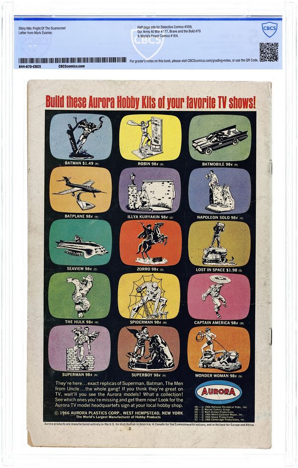 Ended Jul 16 2025 Winning Bid $213 Cover pencils by Carmine Infantino, inks by Joe Giella. 1st Silver Age appearance of Scarecrow in book-length story, "Fright of the Scarecrow!", script by Gardner Fox, pencils by Sheldon Moldoff (as Bob Kane), inks by Joe Giella; While entertaining some children in the park, Dick happens to notice the Scarecrow retrieving buried loot from a past robbery; He calls in Batman and together they battle their old foe until they are blinded by Scarecrow's fear gas. Little Pete humor half-page by Henry Boltinoff. Letter from comic book writer Mark Evanier. Peace on Earth public service announcement. Eyes Front! humor half-page by Henry Boltinoff. 36 Pages, Full Color. Cover price $0.12. Grade: CBCS 3.5 explanation of grade Condition: Used (collectible)