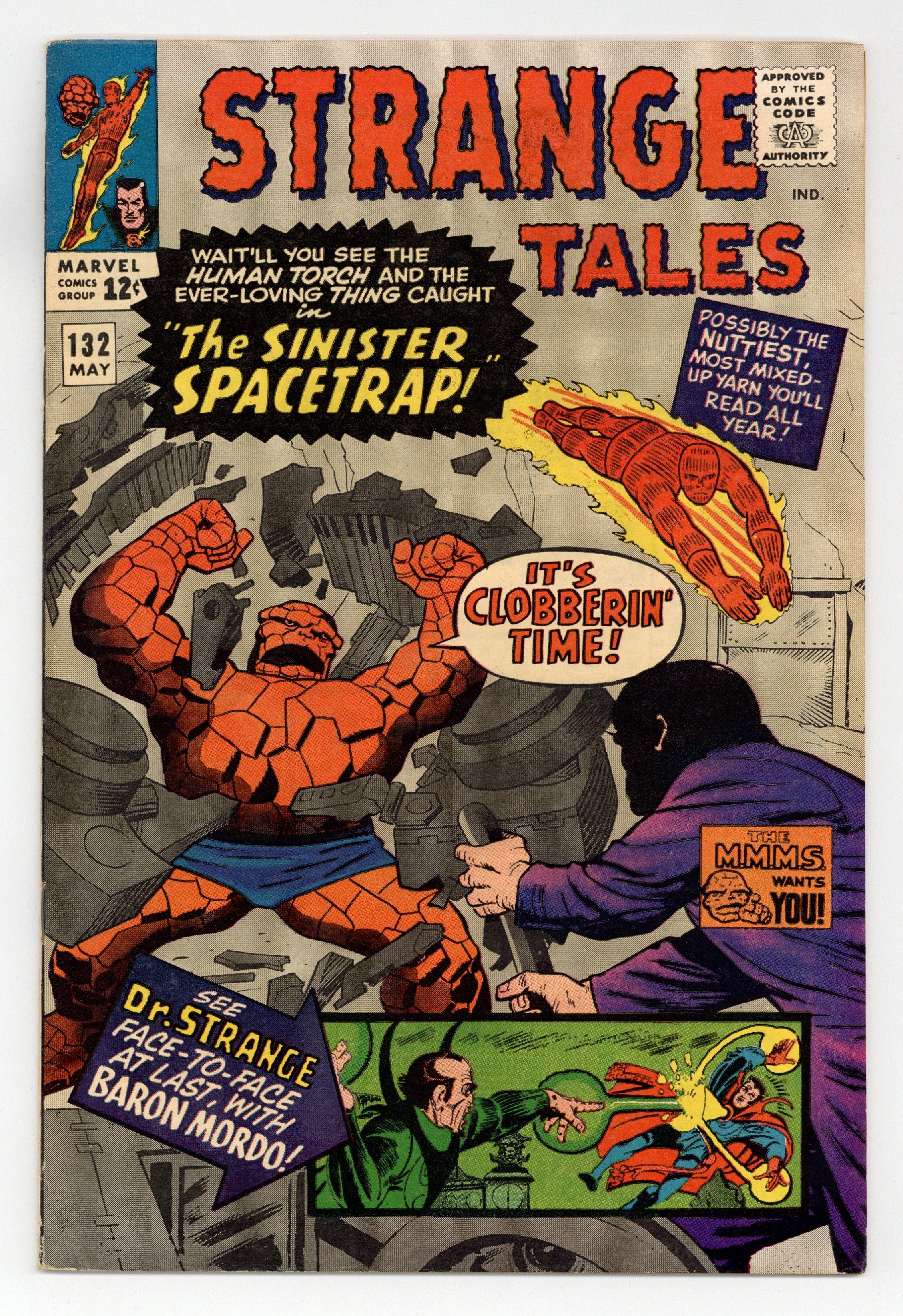 Ended May 19 2025 Winning Bid $28 Cover pencils by Jack Kirby. The Human Torch and the Thing star in "The Sinister Spacetrap!", script by Larry Ivie and Bob Powell (co-plot), pencils by Bob Powell, inks by Mike Esposito (as M. Demeo); Sometime after the FF visit the Skrull home world, Mr. Pearson of NASA pays a visit to tell them of a security risk, Professor Jack; Doris gets upset after Johnny stands her up for the 113th time; Posing as "Doug Brown", Johnny acts as Jack's assistant, in order to keep an eye on him; Guest appearances by Sue Storm and Reed Richards. "Face-to-Face at Last With Baron Mordo!", script by Steve Ditko (plot) and Stan Lee (dialogue), art by Steve Ditko; Dr. Strange reaches his Greenwich Village home safely but discovers one of Mordo's followers has taken over his sanctum; In a hidden cave in Tibet The Ancient One's servant questions the meaning of his ailing master's word "Eternity"; Strange bluffs his way into his sanctum but when he attempts to consult the All-Seeing Eye he discovers it's been booby-trapped, sending a signal to Mordo and Dormammu of his whereabouts; Strange battles Mordo; Appearance by Clea. 36 pgs., full color. Cover price $0.12. Grade: VG 4.0 explanation of grade Condition: Used (collectible)