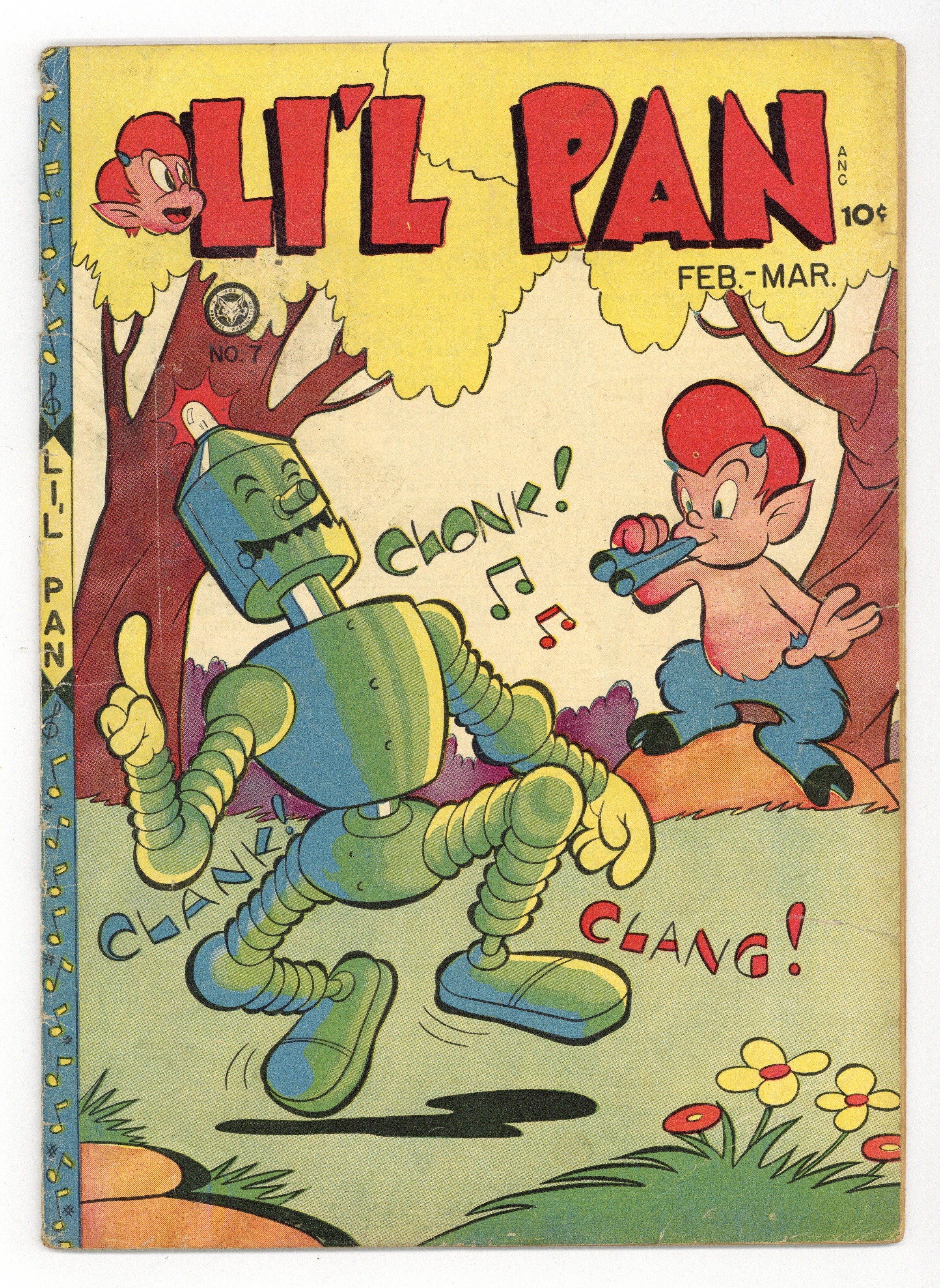 Art by Ellis Chambers and Pat Adams. Lil Pan, son of the Greek god Pan, has adventures with mythical creatures. Lil Pan goes to Greenland and meets Jack Frost; He tours other untamed places in the world, such as Africa and Brooklyn; Educational comics about the composer Beethoven. Li'l Pan in Greenland; Sammy Centaur; Cosmo Cat on the Amazon; Li'l Pan in Africa; Lil' Laura; Li'l Pan in Brooklyn; Imagine That!; Cosmo Hep Cats. 36 pages, Full Color. Cover price $0.10. Grade: GD/VG 3.0 explanation of grade Condition: Used (collectible)