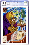 Cover pencils by Cosme Quartieri, inks by Roberto Bat. Bewitched; Mrs. Potts tells her son Chip the story of how the young Prince (the future Beast) was cruel and heartless in his youth; Belle recalls the time when, as a child, she was chased by a bear. Bewildered; Mrs. Potts tries to warm the Beast's cruel heart by getting him interested in love poetry and fine literature. Scripts by John Blair Moore, art by Jorge Sanchez. 36 pgs. $1.50. Cover price $1.50. Grade: CGC 9.8 explanation of grade Condition: Used (collectible)
