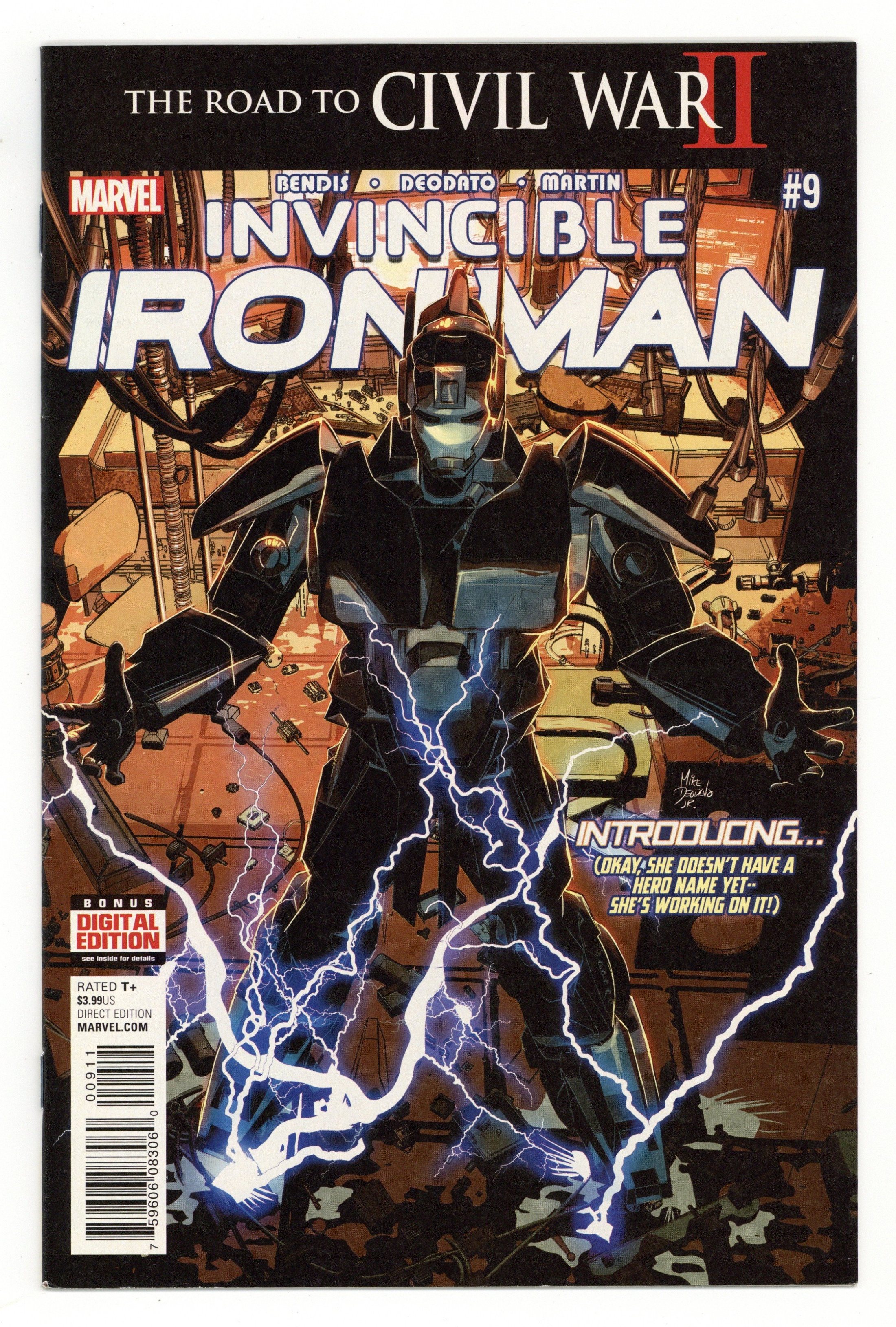The War Machines: Part 4 - Written by Brian Michael Bendis. Art and Cover by Mike Deodato. Tony and Rhodey are best friends on and off the battlefield but their friendship is tested in ways it never was before as the new power players in the Marvel Universe reveal themselves in a bloody and dangerous fashion that threatens everything they stand for. A Civil War II prologue story! 36 pages, full color. Rated T+ Cover price $3.99. Grade: VF- 7.5 explanation of grade Condition: Used (collectible)