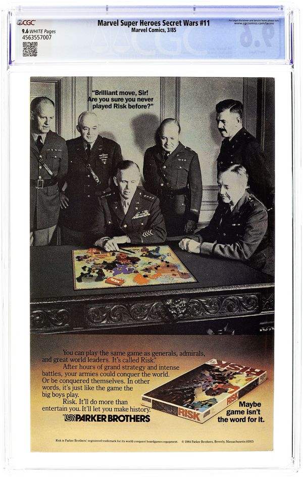 Direct Edition. "...And Dust to Dust!" Part 11 of 12. Story by Jim Shooter. Art by Mike Zeck and John Beatty. Doom has accomplished the unimaginable, he has defeated the nigh omnipotent Beyonder and now contains the fallen entity's vast power within himself. The heroes must make a fateful decision, can Victor Von Doom be trusted with so much power? It's a decision that could cost them everything. Plus, learn the ultimate fate of the villains and the city of Denver, Colorado. 36 pages, full color. Cover price $0.75. Grade: CGC 9.6 explanation of grade Condition: Used (collectible)