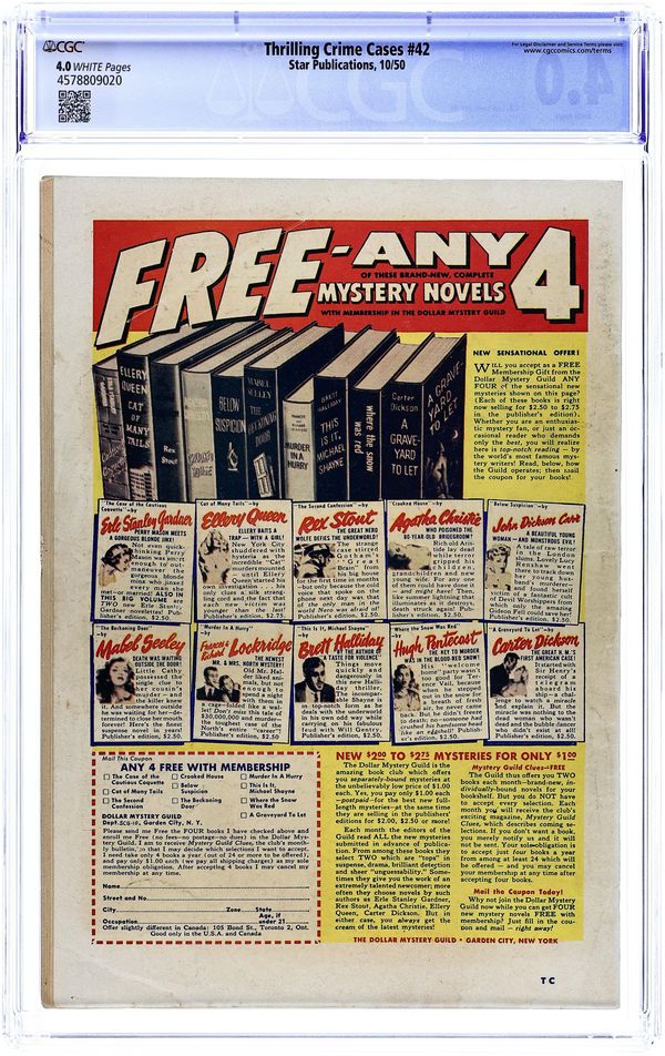 Published 1951 by Star Publications.Thrilling Crime Cases (1950) 42 CGC 4.0
