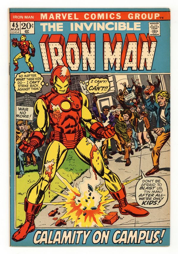 Ended Jun 4 2025 Winning Bid $22 "Beneath the Armor Beats a Heart!" Story by Gary Friedrich. Art by George Tuska and Vince Colletta. Cover by Gil Kane. During Iron Man's triumphant battle over the Night Phantom, Marianne Rodgers reveals to Shell-head that she knows he is Tony Stark. Later that evening Tony proposes to Marianne, and she accepts. Meanwhile, Kevin O'Brien is growing increasingly jealous of Tony's relationship with Marianne, and that leads to the first battle between Iron Man and the Guardsman! Also in this issue, Simon Gilbert wants the Stark Industries board of directors to remove Tony as company president. 32 pages Cover price $0.20. Grade: FN 6.0 explanation of grade Condition: Used (collectible)