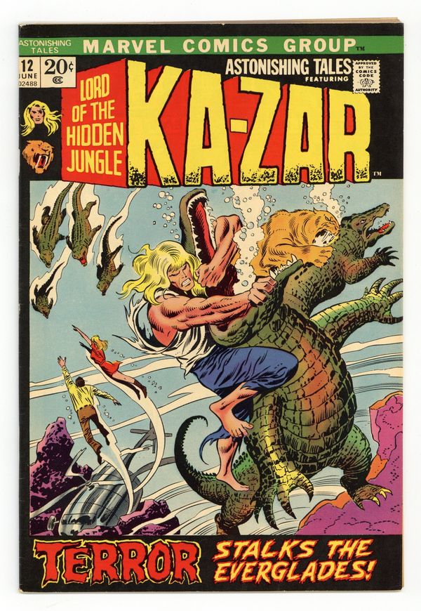 Ended Jun 17 2025 Winning Bid $13 Cover pencils by John Buscema, inks by Joe Sinnott. Terror Stalks the Everglades!, script by Roy Thomas (pages 1-9, 17-21) and Len Wein (pages 10-16), pencils by John Buscema (pages 1-9, 17-21), Neal Adams (pages 10-16), and John Romita (touchups) (pages 10-16), inks by Dan Adkins (pages 1-9, 17-21), none (pages 10-16); Ka-Zar and Zabu fly to the Everglades to help Barbara Morris and Paul Allen search for Ted Sallis; Once there they encounter the Man-Thing and AIM agents; Also, the back story of how Dr Calvin was shot after the origin tale of Man-Thing in Savage Tales #1 is told. Cover price $0.20. Grade: FN- 5.5 explanation of grade Condition: Used (collectible)