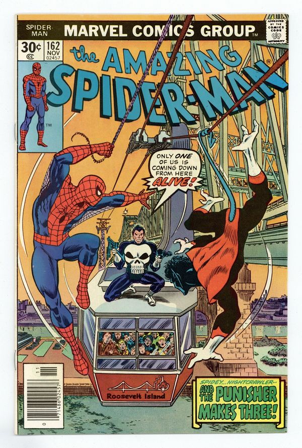 Ended Jul 28 2025 Bid History 7 bids Winning Bid $36 "Let the Punisher Fit the Crime!" Part 2 of 2. Guest-starring Nightcrawler and the Punisher. Script by Len Wein. Art by Ross Andru (breakdowns), Mike Esposito (finishes), and Dave Hunt (backgrounds). Cover by Ross Andru and John Romita. After a scuffle atop the Roosevelt Tramway; the Punisher, Nightcrawler, and Spider-Man come to a meeting of the minds! The trio realizes that none of them are the lethal sniper terrorizing the city! And they vow to catch the mysterious gunman before his next kill! Acting on a tip; the web-slinger, Punisher, and Nightcrawler converge on a street festival to smoke out the shooter! Can the heroes solve the killer's deadly puzzle? Or perhaps better stated...his Jigsaw puzzle? First appearances of Dr. Marla Madison and Jigsaw. Cameo appearances by Harry Osborn, Flash Thompson, Mary Jane Watson, and J. Jonah Jameson. (Notes: The Punisher appears next in Amazing Spider-Man 174. Jigsaw returns in Amazing Spider-Man 188. This story was reprinted in Marvel Tales 215.) 36 pages. Cover price $0.30. Grade: FN 6.0 explanation of grade Condition: Used (collectible)