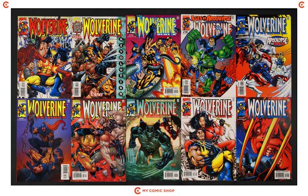 Issues 147D, 148, 149, 150A, 151, 152D, 153, 156, 157D, 158 of Wolverine (1988 1st Series). Most will grade in the VF to NM range.