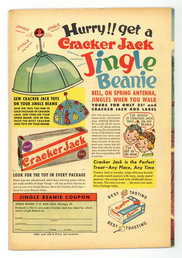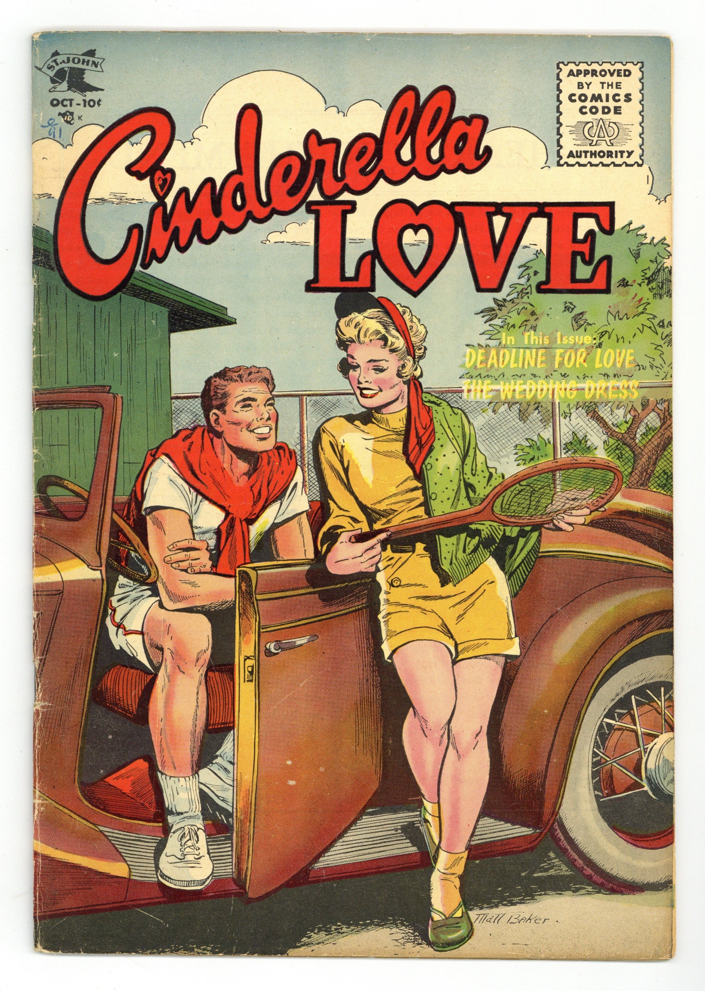 Cover by Matt Baker. Stories and art by George Olesen and others. St. John's influential romance title was noted for its memorable covers by Matt Baker. The romance between foreign correspondents Carol and Roger is jeopardized when Roger is captured by bandits in Romania. After Tom loses the use of his leg in Korea, he doesn't know if he can still marry Meg, in a story that reflects the attitudes of its time. Anne is torn between Pete and Tony, two men in the dangerous field of tunnel construction, but a tunnel cave-in proves to her which one she truly loves. Cover by Baker. Heart on the Mend; Love's Fighting Heart; Deadline for Love; The Wedding Dress; Love Letter to Five Million; Tomorrow Is Ours! Final issue of the series. 32 pages, Full Color. Cover price $0.10. Grade: VG 4.0 explanation of grade Condition: Used (collectible)
