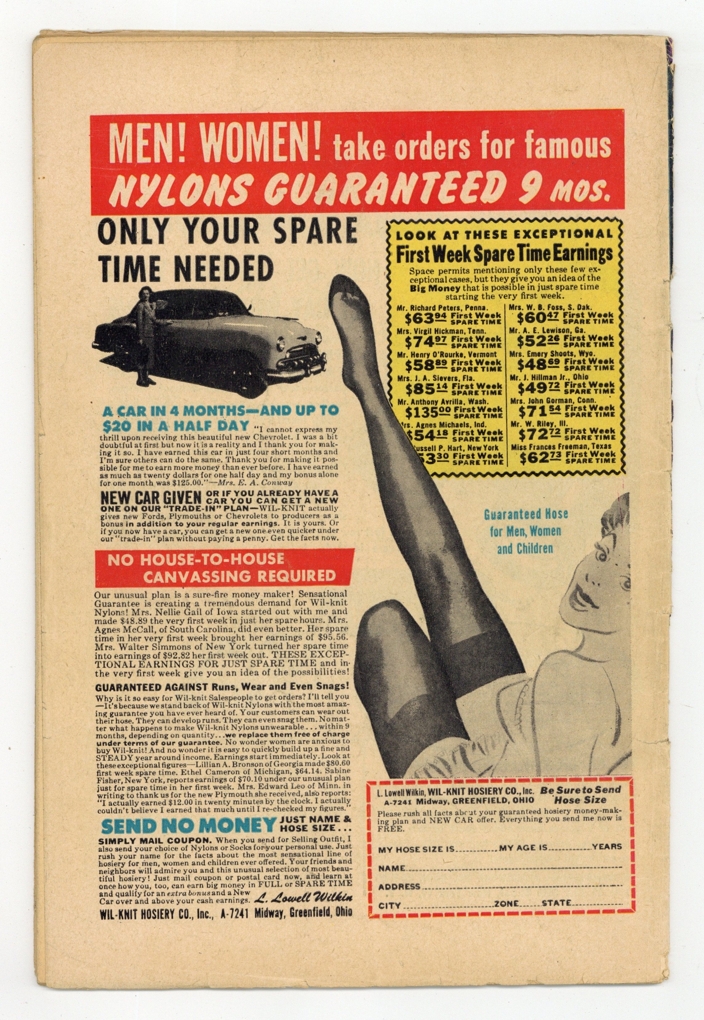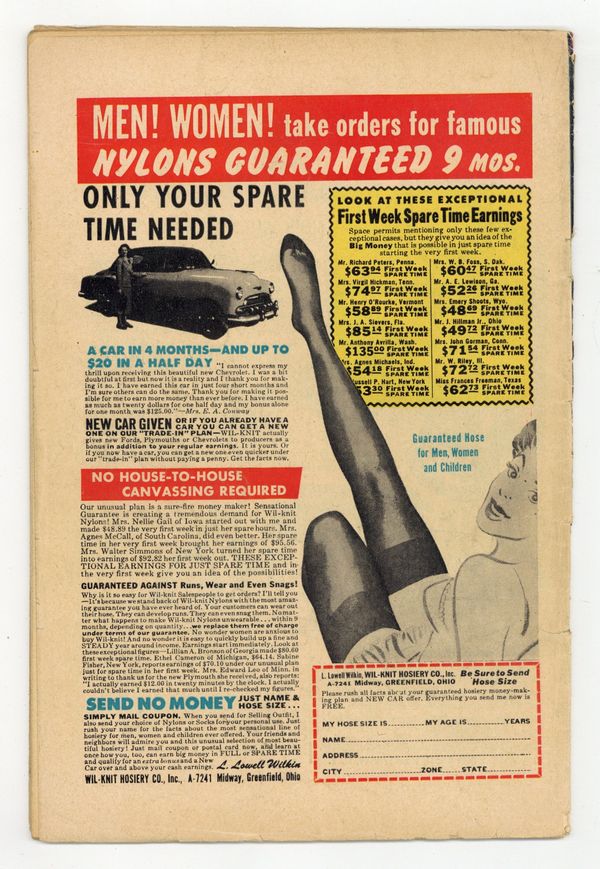 Stories and art by Robert Webb and others. Pre-Code horror comics from Ajax-Farrell and their anonymous talents. A wealthy man has a special place for his unfaithful wives. A bank robbery turns out to be the work of the most unlikely suspect. The Trumpet that will signal the Apocalypse falls into the hands of Gabriel, who's only too ready to use it. Frigid Fear!; Wheel of Terror; Doctor Death; Trumpet of Doom; Dying Is So Contagious. 36 pages, Full Color. Cover price $0.10. Grade: GD- 1.8 explanation of grade Condition: Used (collectible)