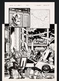 - Thanks to a body-swapping scheme by Bullseye, She-Hulk is trapped in the mechanical body of Machinesmith! Having found out where the deadly assassin has taken her body, it's time to roll out- and Jen's got plenty of transportation options thanks to Machinesmith's absolutely stuffed garage. MacDonald does a fantastic job filling the 3/4 splash with loads of tech to marvel at without making the page seem too messy. Ink over printed roughs on art board. 11" x 17".