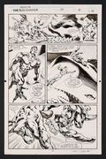 - Summoned by the Horn of Proteus (which you may have seen Doom tooting in a classic panel from Spidey Super Stories), a giant sea beast attacks the United Nations! To make things even worse, Namor's also got to contend with his "son" Llyron who has staged the attack to make Namor look like he's returned to his villainous ways. A great page from Isherwood who does a brilliant job depicting the scale of the battle with the massive beast alongside close, powerful panels of the two men fighting in its wake. Signed by the artist in lower margin. Pencil and ink on Marvel Comics art board. 11" x 17".