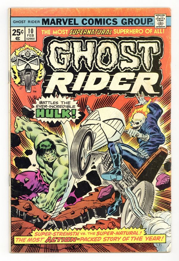 Ended Oct 27 2025 Bid History 6 bids Winning Bid $16 "Ghost Rider!" Story by Gary Friedrich. Art by Mike Ploog. Cover by Ron Wilson and Joe Sinnott. This issue reprints Ghost Rider's origin tale from the pages of Marvel Spotlight (1971 1st Series) #5. 32 pages, FC. NOTE: The Hulk appears on the cover but is not inside this issue. Next issue contains a note from Marvel explaining that the cover for this fill-in issue went to press before they realized the planned story was not ready yet. The Hulk does appear in Ghost Rider #11. Cover price $0.25. Grade: VG- 3.5 explanation of grade Condition: Used (collectible)