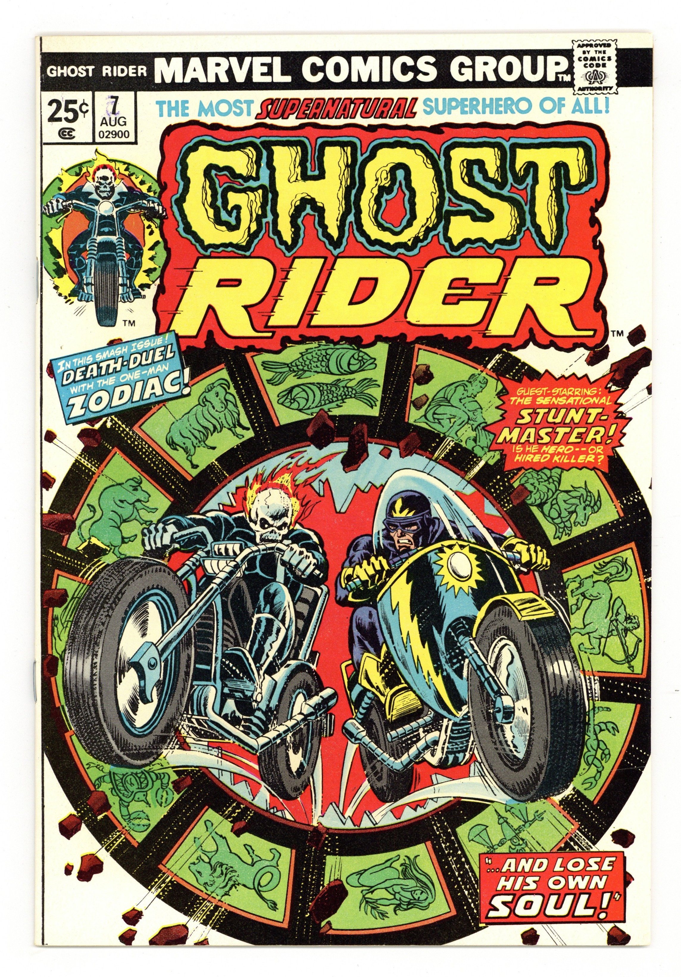 Ended Nov 3 2025 Bid History 4 bids Winning Bid $33 "...And Lose His Own Soul" Guest-starring Stunt Master. Story by Tony Isabella. Art by Jim Mooney and Jack Abel. Ghost Rider chases Taurus through the streets of San Francisco, but can even the Spirit of Vengeance stop a man that has the power of the entire Zodiac at his disposal? 32 pages, FC. Cover price $0.25. Grade: FN/VF 7.0 explanation of grade Condition: Used (collectible)