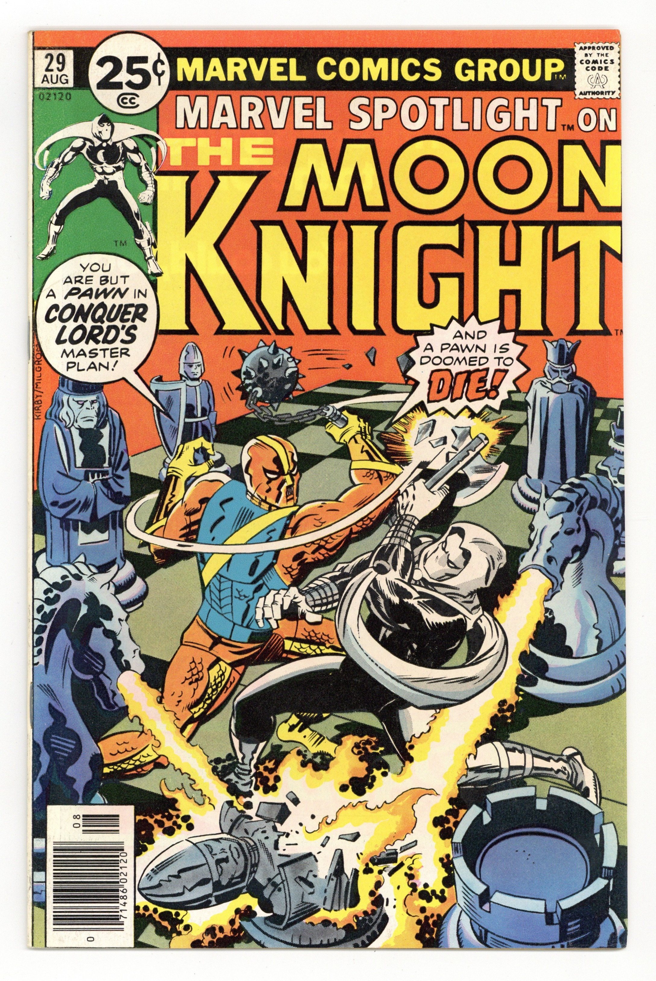 Starts Feb 9 Cover pencils by Jack Kirby, inks by Al Milgrom. The Deadly Gambit of Conquer-Lord!, script by Doug Moench, art by Don Perlin; Moon Knight stops Conquer-Lord from assassinating the mayor; Conquer-Lord escapes with Marlene as his hostage; Moon Knight goes after him 36 pages, full color. Cover price $0.25. Grade: FN/VF 7.0 explanation of grade Condition: Used (collectible)