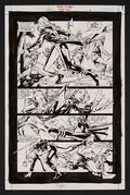 Black Canary takes on a band of Vikings in this frenetic fight page from the great Butch Guice! Time travel shenanigans abound when STAR Labs discovers an ancient tablet engraved with Dinah's image and shanghaies her into a mission to the past to find out what's going on. Guice does a beautiful job here with subtle panel breaks that give the page a ton of energy. Pencil and ink on DC Comics art board. 11 1/4" x 17".