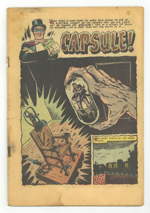 Starts Apr 4 Cover by Bernard Baily. Stories and art by Ross Andru, Moe Marcus, Rocco "Rocke" Mastroserio, Ed Robbins, Charles Stern and Eugene E. Hughes. Pre-Code horror tales from Aragon, an imprint of Stanley Morse Publications. A mad furniture designer seeks revenge on his unfaithful wife by turning her into furniture. A pianist who steals other people's music is hired by a mysterious figure to create an original funeral dirge, leading to an ironic comeuppance. A scientist seeking the secret of immortality has an unexpected breakthrough, but it has a tragic catch. Capsule; Modern Design; Ghosts...What About Them?; The Last Chord; Immortality; The Unexpected. 36 pages, Full Color. Cover price $0.10. Grade: Coverless explanation of grade Condition: Used (collectible)