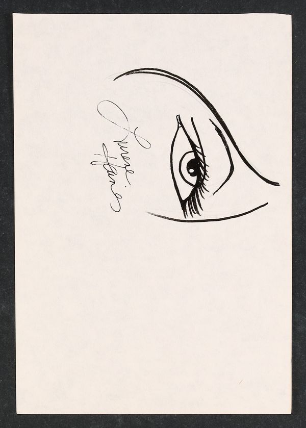 Signed by the artist. Ink on sketchbook paper. 8 1/4" x 5 3/4".