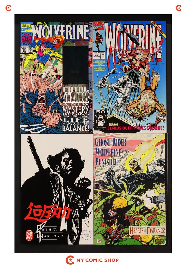 Issues 29, 31, 32, 34, 38, 40, 41N, 42-45, and 75 of Wolverine (1988 1st Series); 1 of Ghost Rider Wolverine Punisher Hearts of Darkness (1991); and 1 of Logan Path of the Warlord (1996). Most will grade in the VF range.