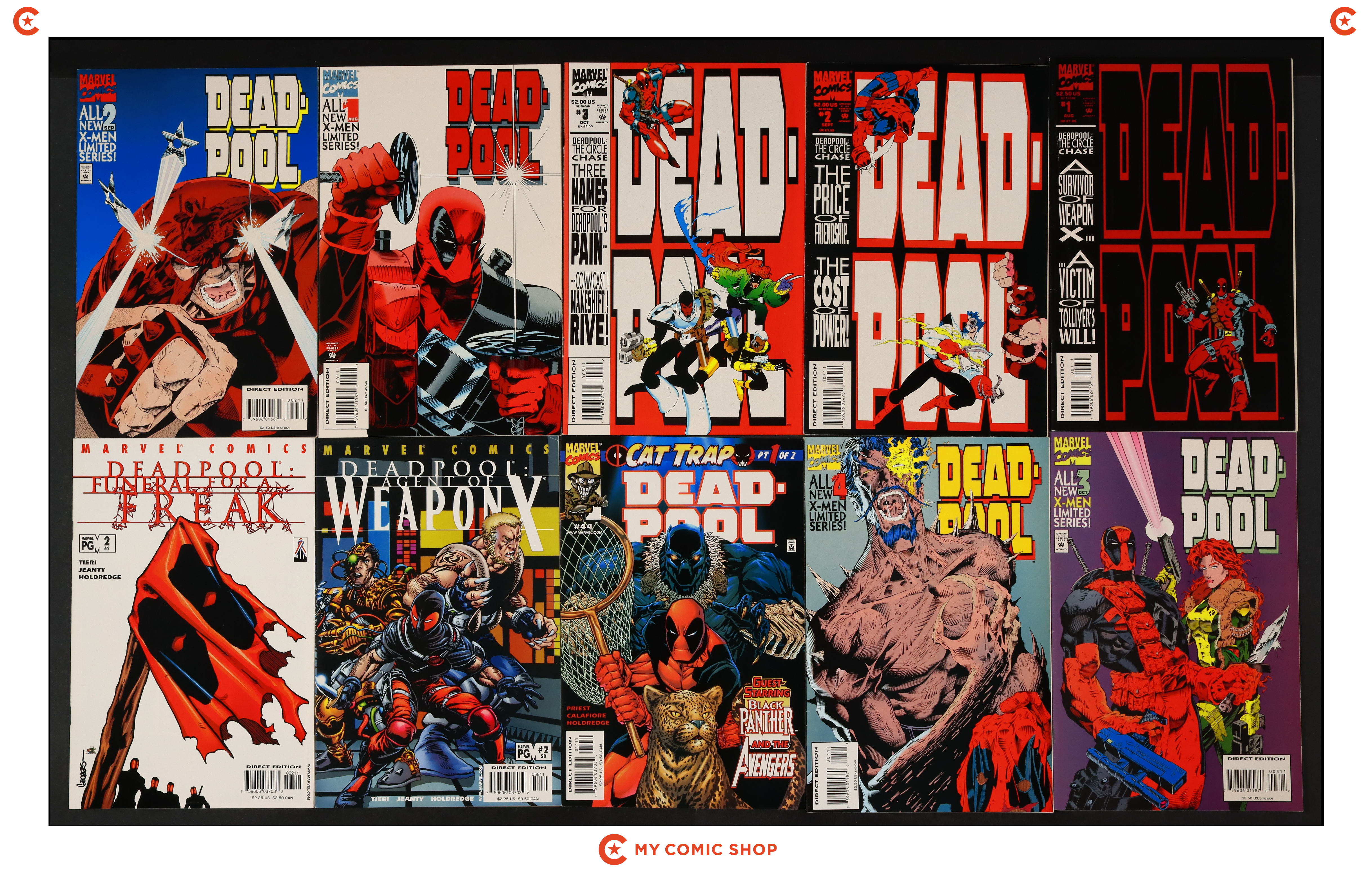 Issues 1-3 of Deadpool The Circle Chase (1993); 1-4 of Deadpool (1994 Mini Series); 44, 58, and 62 of Deadpool (1997 1st Series). Most will grade in the VF range with some grading FN.