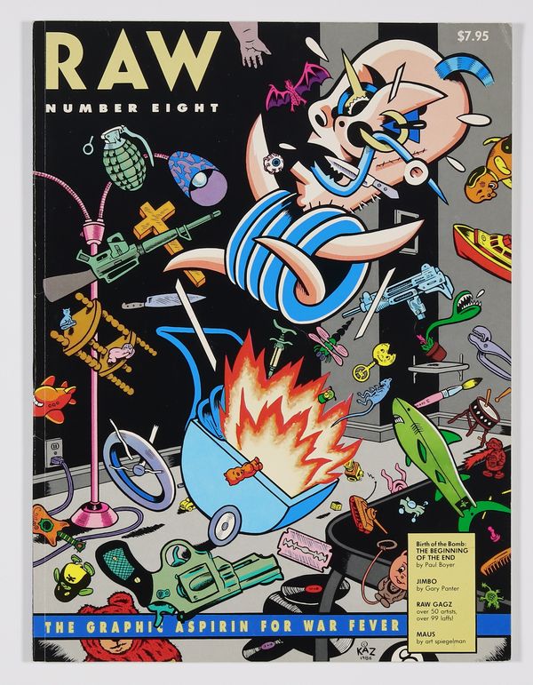 Graphic Aspirin For War Fever Issue. Maus chapter 7 is featured in a 32-page bound-in supplement. Cover by Kaz. Squarebound, 10.5 x 14 in.; 78 pages (plus the Maus supplement). Cover price $7.95. Grade: VF- 7.5 explanation of grade Condition: Used (collectible)
