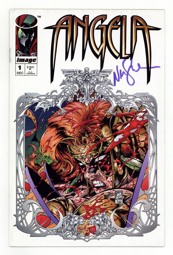 Starts Feb 16 Direct Edition. Cover art by Greg Capullo. Untitled Angela story, script by Neil Gaiman, art by Greg Capullo; Angela is charged with Treason for failing to kill Spawn. Angela pinup, art by Sean Parsons and Brad Gorby. 36 pgs. $2.25. Cover price $2.25. Grade: FN- 5.5 explanation of grade Condition: Used (collectible)