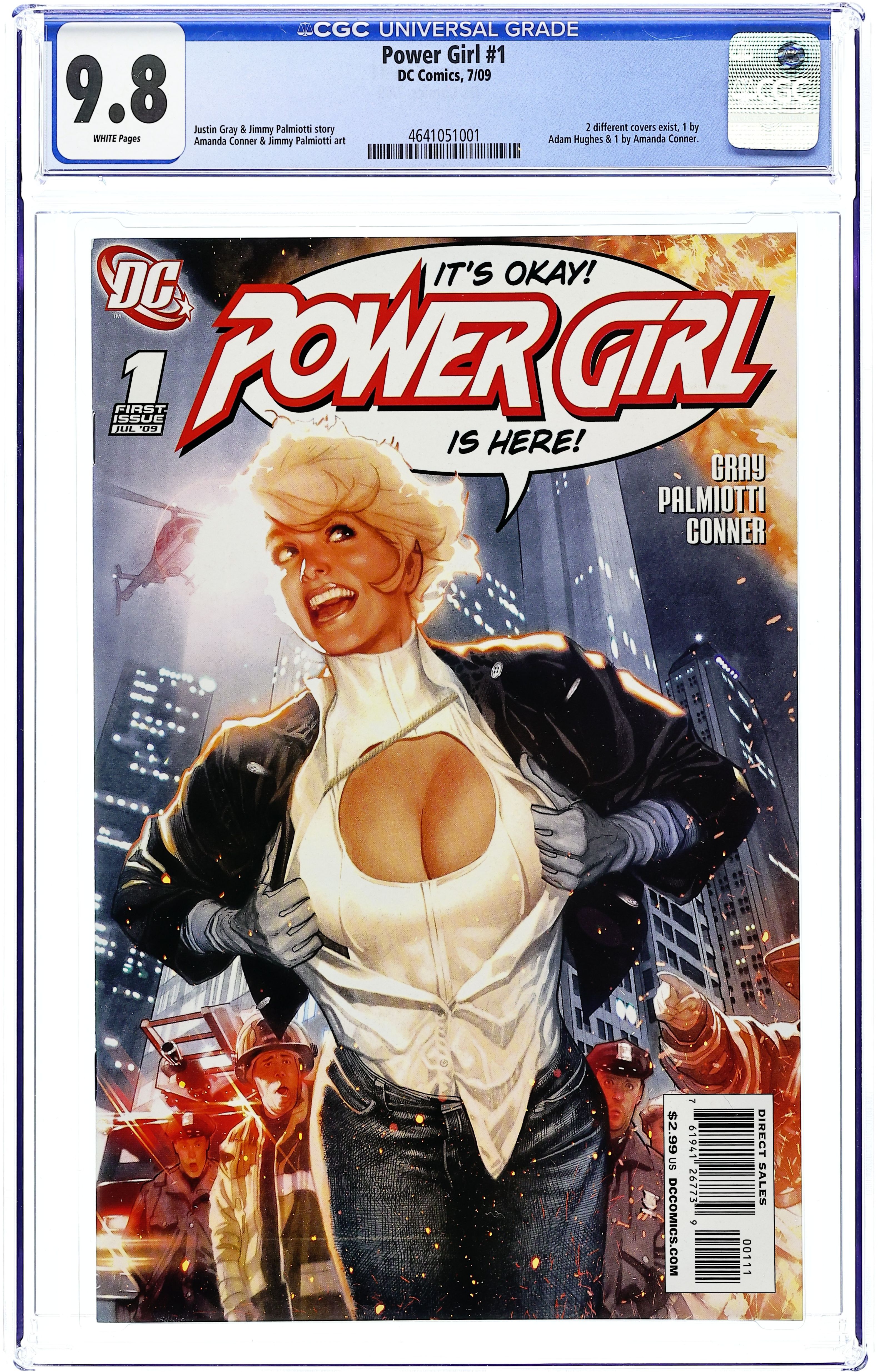 Covers by Adam Hughes. Written by Jimmy Palmiotti & Justin Gray. Art by Amanda Conner. In her own ongoing series at last! Straight from the pages of JUSTICE SOCIETY OF AMERICA, Power Girl starts life anew by building herself a secret identity. But a major villain from her past has other plans in store for the Super Hero, and to get his way, he's holding Manhattan hostage! 32 pages. Cover price $2.99. Grade: CGC 9.8 explanation of grade Condition: Used (collectible)
