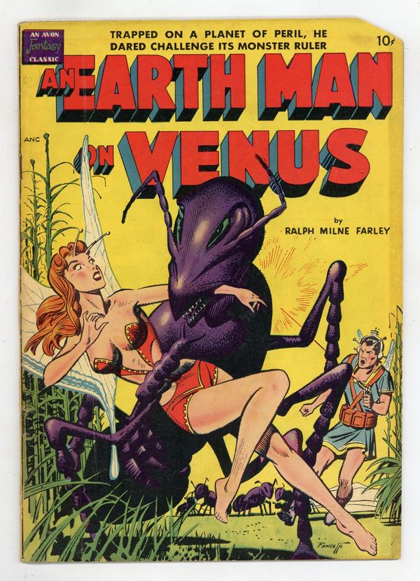 Starts Jan 3 Story by Ralph Milne Farley. Art by Wally Wood. Cover by Gene Fawcette. An adaptation of Ralph Milne Farleys vintage science fiction novel The Radio Man, which in turn owes a debt to Burroughs A Princess of Mars. Earth scientist Myles Cabot is mysteriously transported to Venus, where he is captured by the gigantic ant-like Formians. But he uses science to fight back, winning the love of the humanoid princess Lilla. An Earth Man on Venus; The Lost Princess. 36 pages, full color. Cover price $0.10. Grade: GD- 1.8 explanation of grade Condition: Used (collectible)