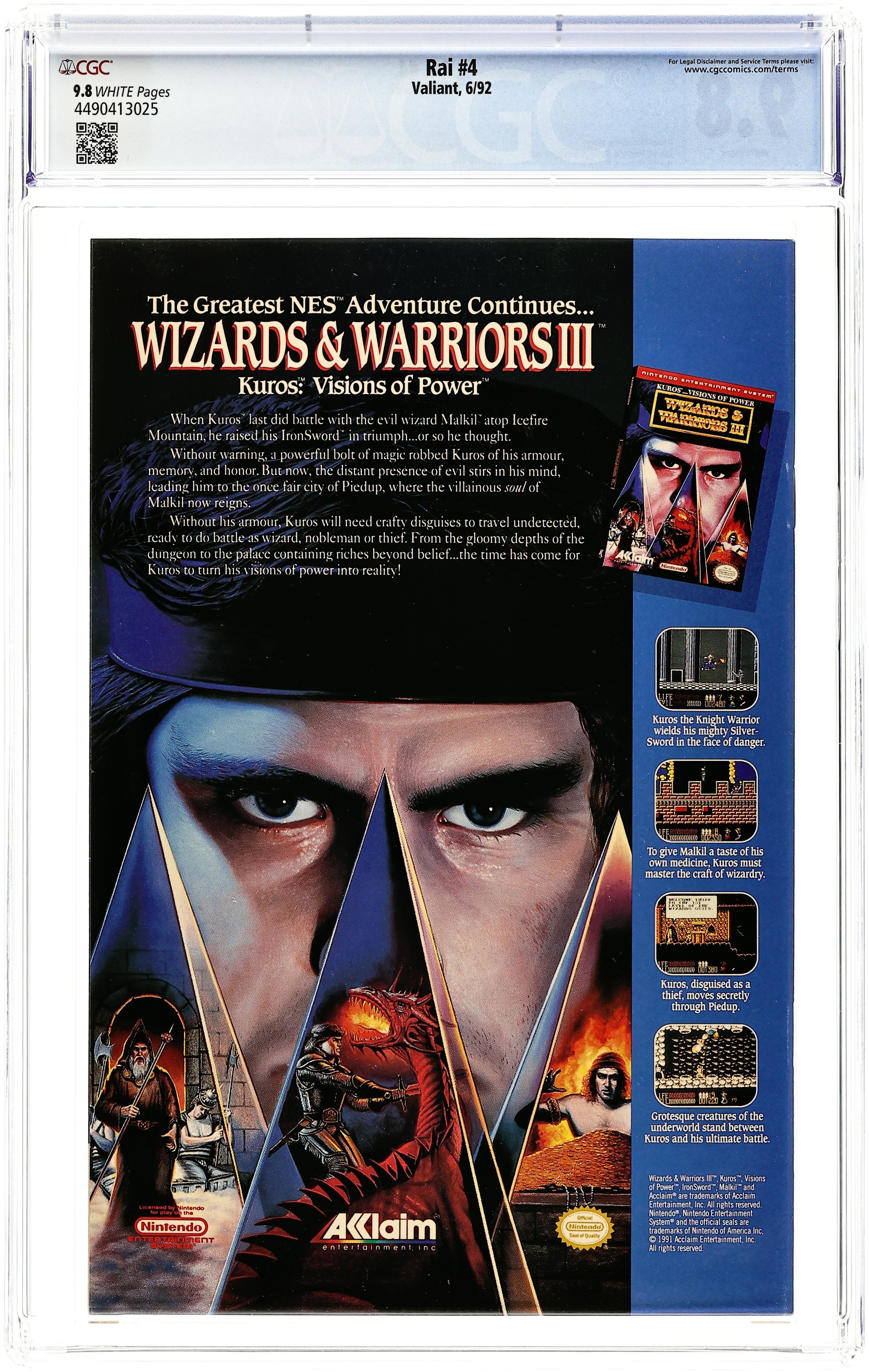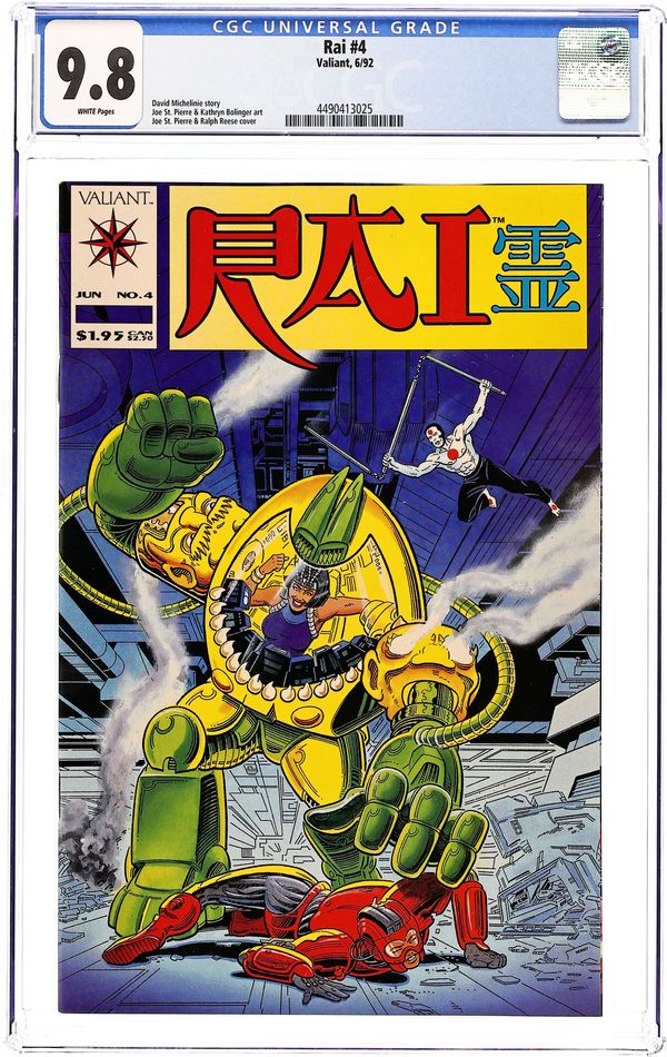 Low print run. This issue does not have a card (coupon). The sweeping saga of civil war thunders to an incredible climax, as Rai, the Spirit Guardian of Japan, battles to preserve the unity of a nation isolated in the void. "An Equality of Slaughter" is written by David Michelinie, with art by Joe St. Pierre and Kathryn Bolinger. Characters: Councilor Isao Seko; Kazuyo Nakadai; Koji; Lt. Wasabe; Makiko Minashi; President Tanaka; Rai [Tohru Nakadai]; Rentaro Nakadai; Suki; Takashi Nakadai. Cover price $1.95. Grade: CGC 9.8 explanation of grade Condition: Used (collectible)