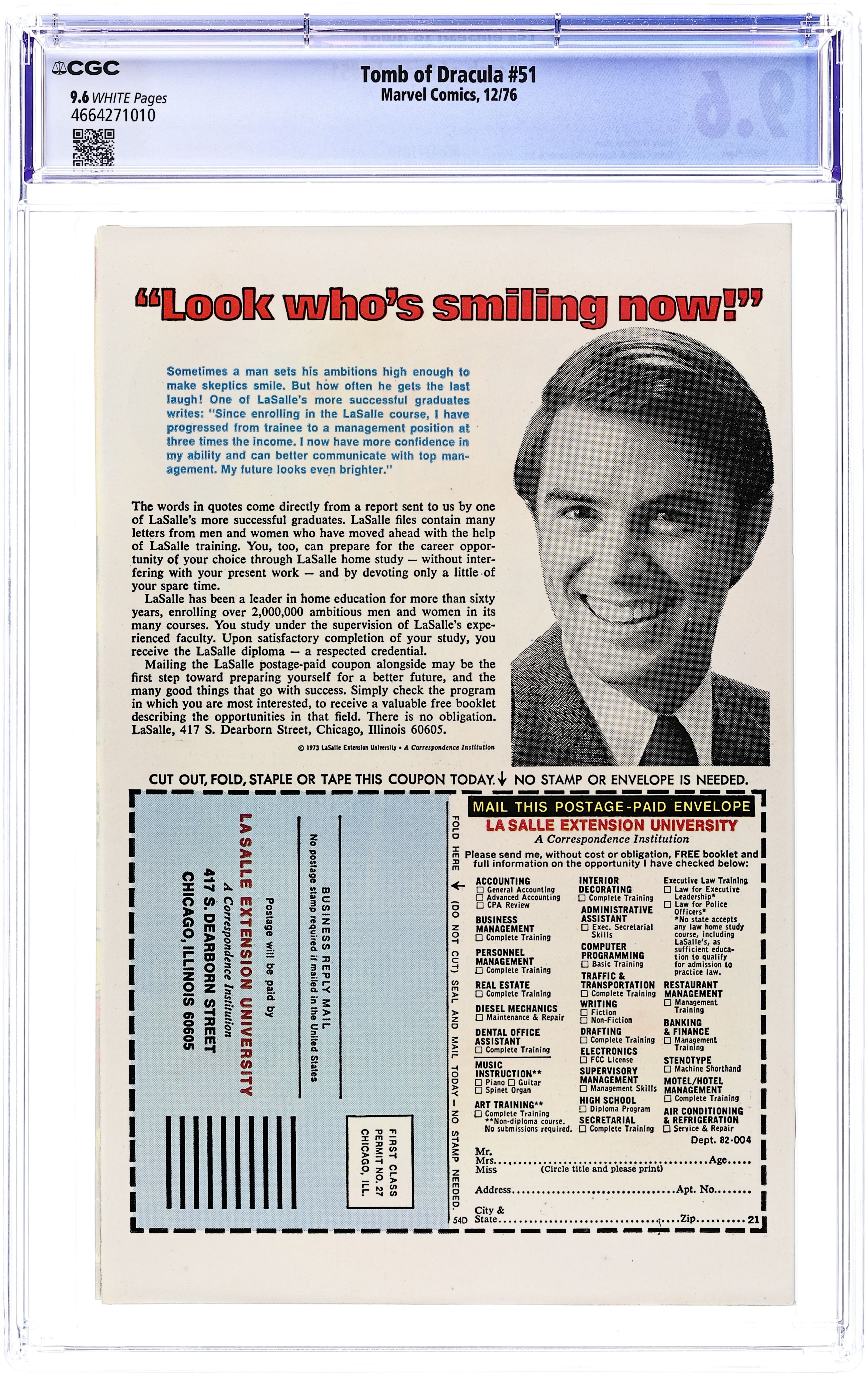 Tomb of Dracula (1972 1st Series) 51 CGC 9.6