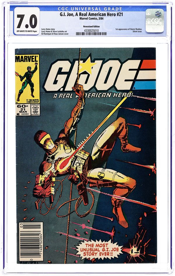 NOTE: This is the classic "Silent Issue" with the 1st appearance of Storm Shadow. Cover price $0.60. Grade: CGC 7.0 explanation of grade Condition: Used (collectible)If you add this item to your want list, we will email you when it becomes available.