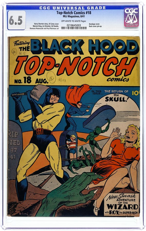 Cover by Al Camy. Edited by Abner Sundell. Stories by Harry Shorten, Al Camy, Bob Montana, Warren King, Joe Blair, Ed Smalle, Roland "Ramona" Patenaude, and Paul Reinman. Heroic tales of action and adventure—these are Top Notch Comics! 68 pages, full color. $0.10. Cover price $0.10. Grade: CGC 6.5 explanation of grade Condition: Used (collectible)