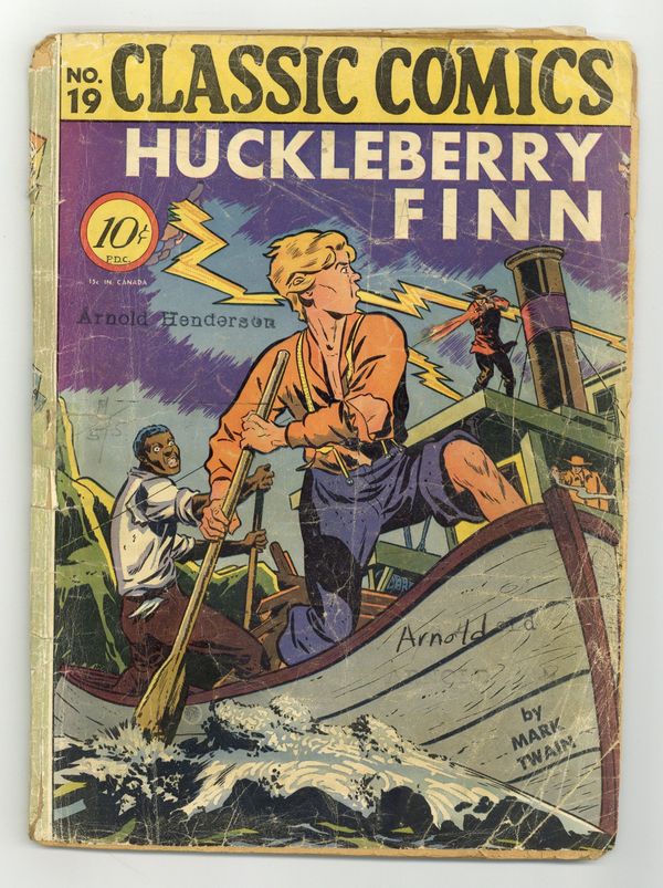 Ends Mar 16 7:45 PM CST Bid History 2 bids Current Bid $3 Your Secret Max Bid If you'd like to bid, please log in or register. Huckleberry Finn, 1st Printing, Classics Comics, Island edition. (HRN 18, 4/44). Cover price $0.10. Grade: PR 0.5 explanation of grade Condition: Used (collectible)