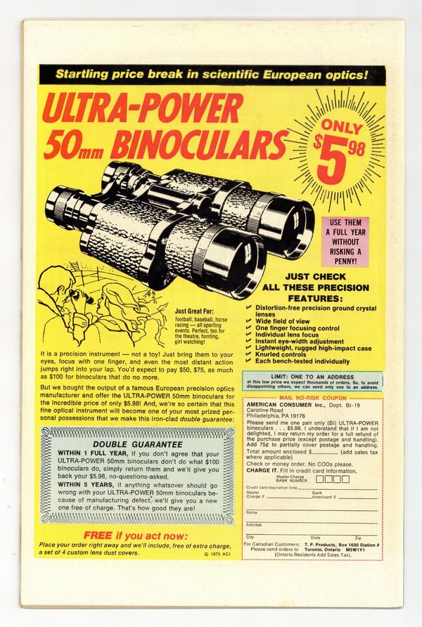"Warhunt!" Part 2 of 2. Story by Chris Claremont and Len Wein. Art by Dave Cockrum and Sam Grainger. Cover by Gil Kane. In order to stop the sinister madman Count Nefaria from raining nuclear Armageddon down upon the world, the new X-Men must fight their way through the Count's mutated bodyguards - the Ani-Men! Plus, one X-Man makes the ultimate sacrifice! NOTE: Death of Thunderbird I. 36 pgs. Cover price $0.25. Grade: FN 6.0 explanation of grade Condition: Used (collectible)