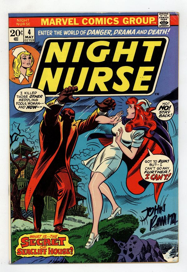 Starts Jan 19 Cover pencils by John Romita, inks by Joe Sinnott. "The Secret of Sea-Cliff Manor!", script by Jean Thomas and Linda Fite, art by Win Mortimer; Christine takes a job working for Edna Porter at Sea-Cliff Manor, caring for her wheelchair-bound nephew Derek; Mysterious and dangerous events ensue before it's revealed that Derek can walk, and is involved in drug smuggling; Harold the butler knocks Derek off the cliff to save Christine at the last minute. 36 pgs., full color. Cover price $0.20. Grade: FN- 5.5 explanation of grade Condition: Used (collectible)