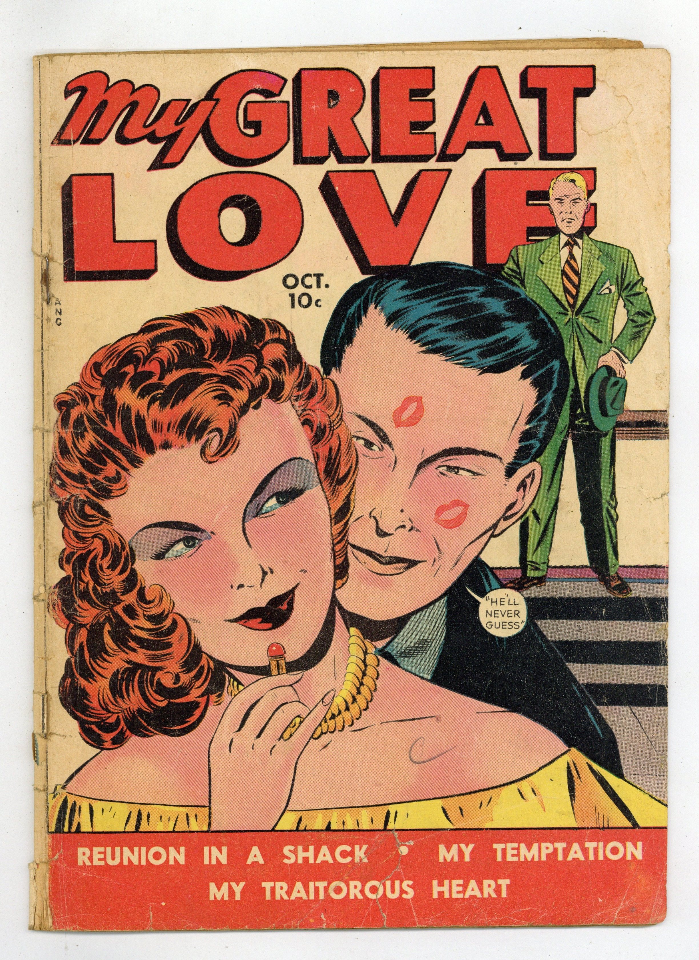 Women seek the right man in this romance title from Fox Feature Syndicate. Best friends Loretta and Lucille go off to the big city to find love, but Loretta sabotages Lucille by telling tales out of school; Dona finds romance a lot more challenging after her father strikes oil and becomes a millionaire; Mary behaves foolishly when she feels threatened by her doctor husband's career. Plus love advice to readers and advice on how to know if love is real. My Traitorous Heart; Reunion in a Shack!; For Heart's Sake; To the Girls!; My Temptation. 36 pages, Full Color. Cover price $0.10. Grade: PR 0.5 explanation of grade Condition: Used (collectible)