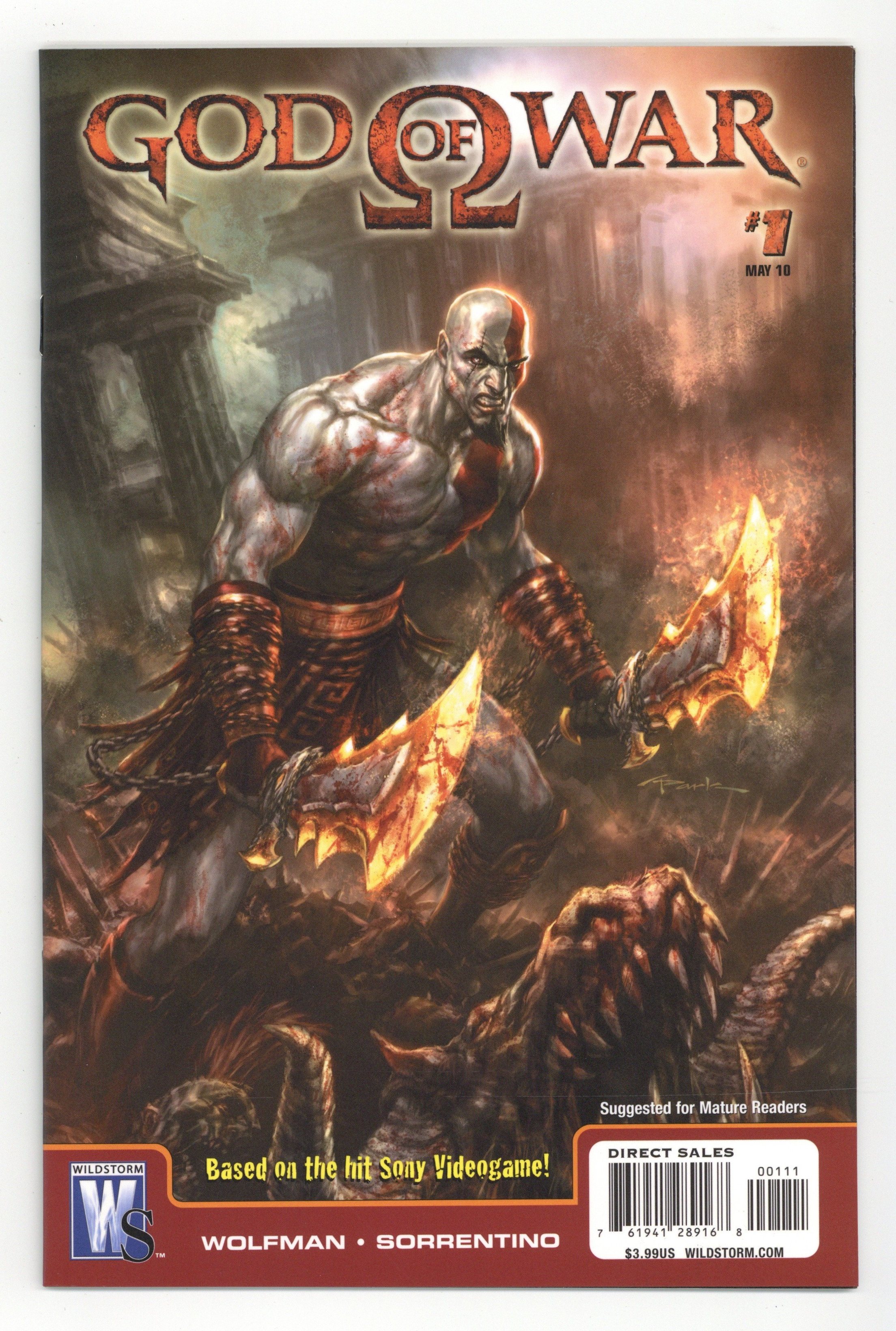 Written by Marv Wolfman. Art by Andrea Sorrentino. Cover by Andy Park. The blockbuster Playstation game comes to life at WildStorm courtesy of writer Marv Wolfman (CRISIS ON INFINITE EARTHS) and artist Kevin Sharpe (RESIDENT EVIL)! Dive into the story behind what makes Kratos, the lead in the video game, a God of War! From his Spartan childhood, to the battles and tragedies that define him, to the war with the gods he currently wages, GOD OF WAR delivers the back-story fans have been clamoring for! And beware anyone who stand in his way! Whether they be god, barbarian, or minotaur matters not to Kratos - he's prepared to destroy all who oppose him! Prepare for the third installment of the hot franchise in 2010 by picking up this action-packed 6-issue miniseries! 32 pages, full color. MATURE READERS. Cover price $3.99. Grade: VF 8.0 explanation of grade Condition: Used (collectible)