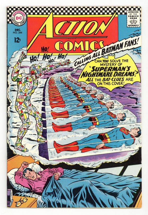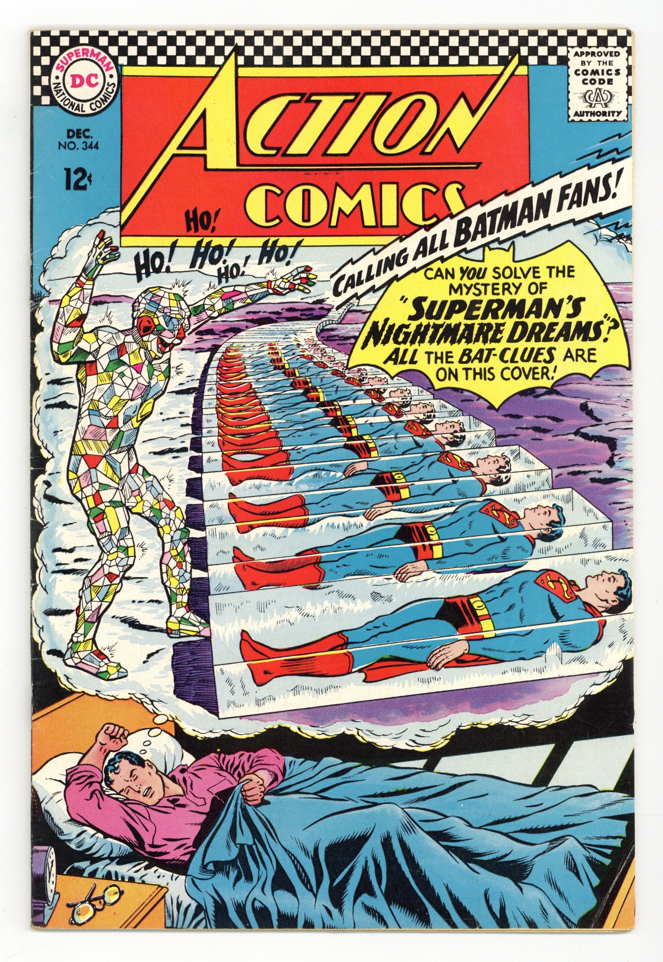Cover pencils by Curt Swan, inks by George Klein. "Superman's Nightmare Dreams!", script by Otto Binder, art by Wayne Boring; Superman and Batman use a machine to temporarily switch bodies. Batman has no control over Superman's body, breaking some containers and exposing Superman's mind to red kryptonite before switching back to his own body; Cameos by the Joker, the Riddler, and the Penguin (on cards). Superman and Batman ad. "The (Super) Girl in the Green House," script by Jim Shooter, art by Jim Mooney; While exploring space, Supergirl finds another planet that is similar to Earth, except that it is run by teens; She is tricked into running for President. An All-Star Collection of the Best of Batman ad. Adventures in the G.I. Joe Club with Andy and George ad. 36 Pages, Full Color. $0.12 Cover price $0.12. Grade: FN- 5.5 explanation of grade Condition: Used (collectible)