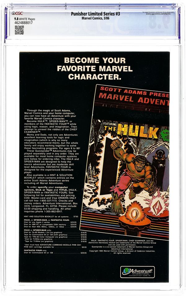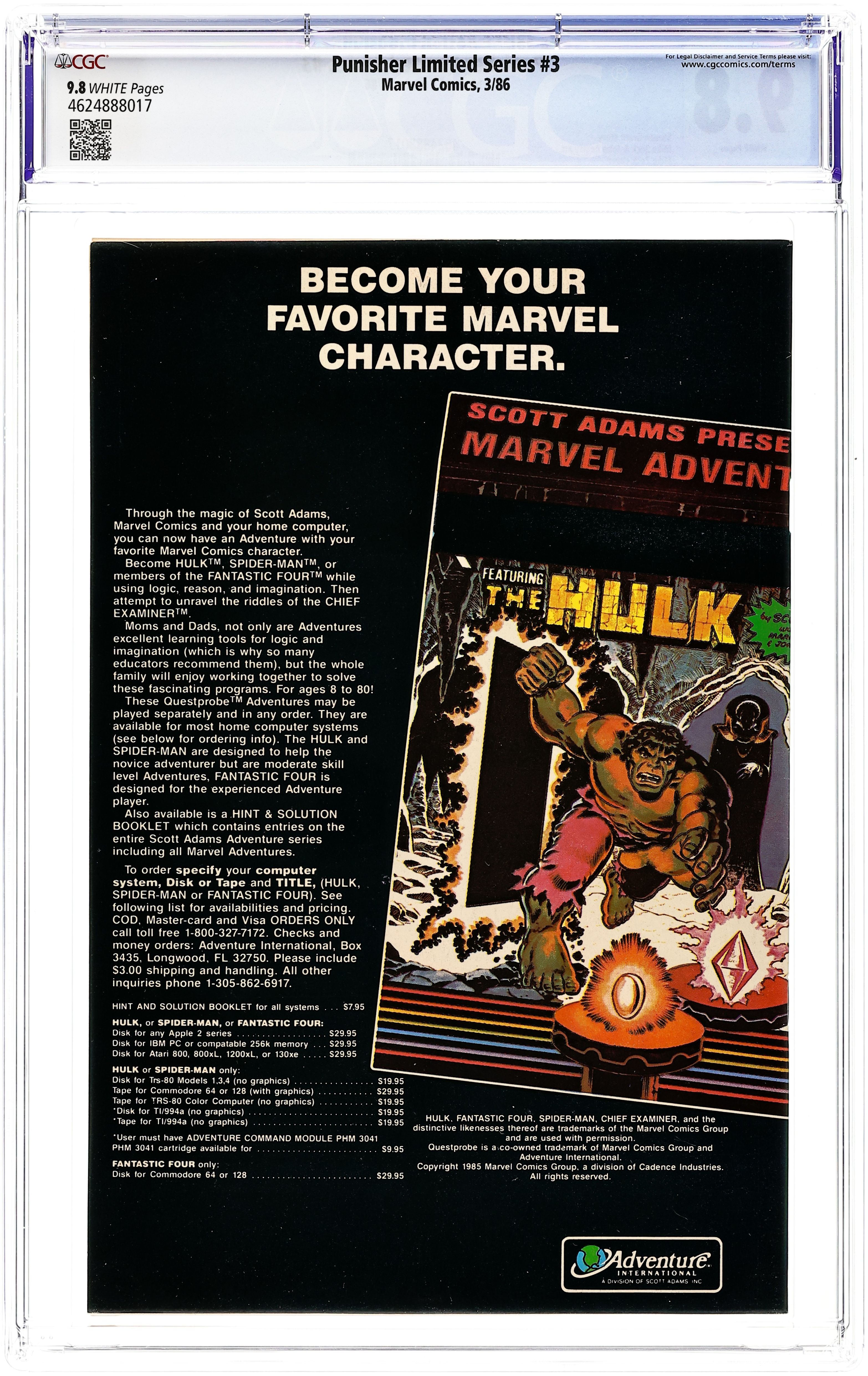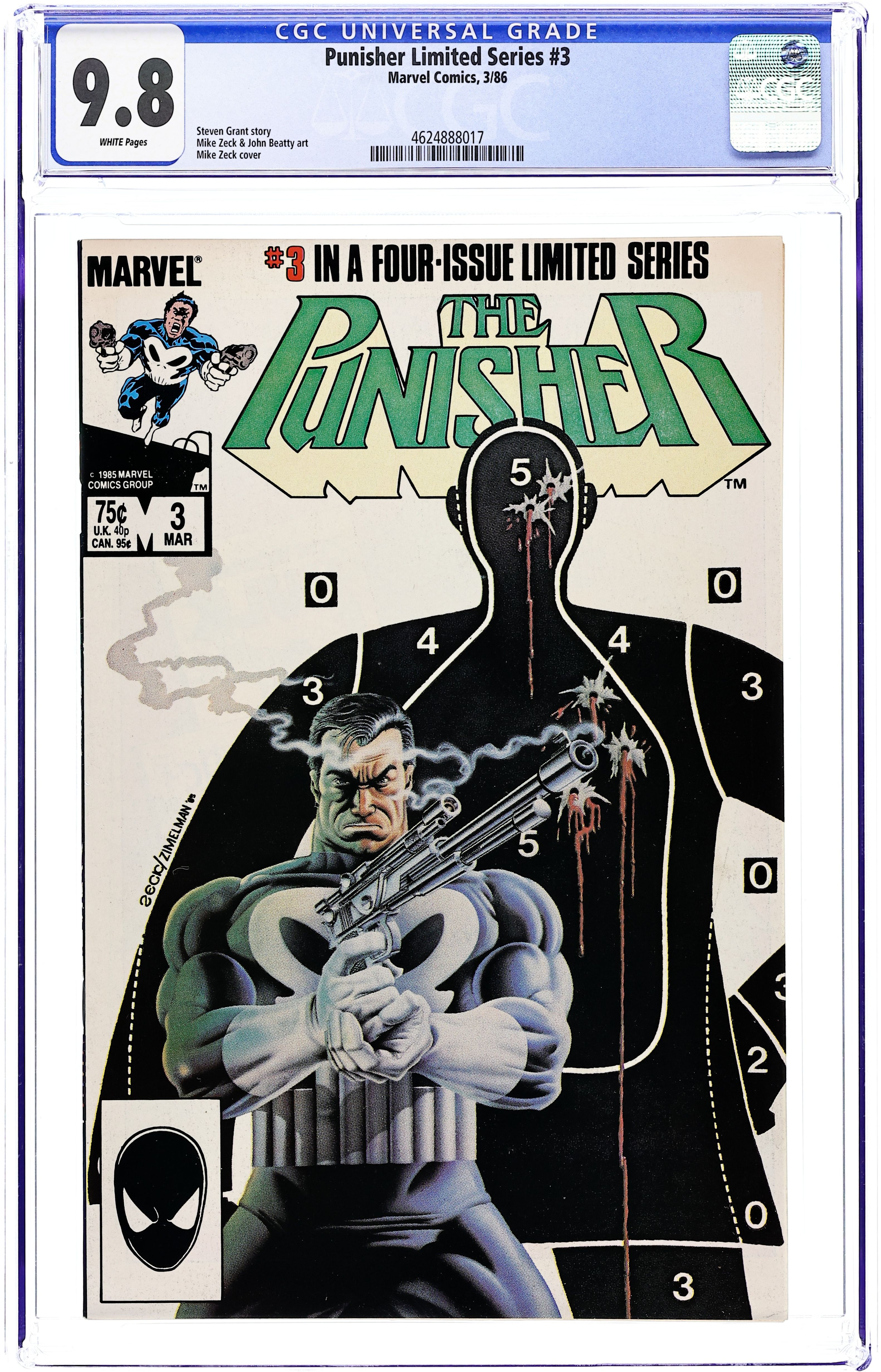 Direct Edition. "Slaughterday!" Story by Steven Grant. Art by Mike Zeck and John Beatty. Cover by Mike Zeck and Phil Zemelman. Punishers are taking out mob bosses! Only one catch, none of them are Frank Castle. Who is behind this coup? Plus, will Frank join The Trust? Cover price $0.75. Grade: CGC 9.8 explanation of grade Condition: Used (collectible)