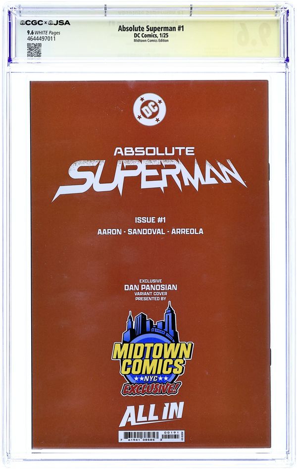 Tags: SupermanAbsolute Superman (2024 DC) 1MIDTOWN CGC 9.6 JSA Panosian