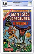 52-page giant. New story: "Tigra the Were-Woman!", script by Tony Isabella, pencils by Don Perlin, inks by Vince Colletta; Greer Nelson, formerly known as The Cat, is transformed by the Cat People into Tigra. Tigra and the Werewolf By Night free the Cat People from Hydra. "Waiter, There's a Werewolf in My Soup!" article by Roy Thomas, art by Don Perlin; Text piece detailing the origins of the Werewolf By Night strip. "Where Walks the Werewolf!" (reprinted from Creatures on the Loose #13), script by Len Wein, art by Reed Crandall; A blind man has the eyes of a wolf transplanted into himself, and becomes a werewolf. "Tigra's Year" article by Tony Isabella; Details how the ideas behind Tigra came about. Includes the original pencil design sketch of Tigra by Gil Kane. 52 pgs., full color. Cover price $0.35. Grade: CGC 8.0 explanation of grade Condition: Used (collectible)