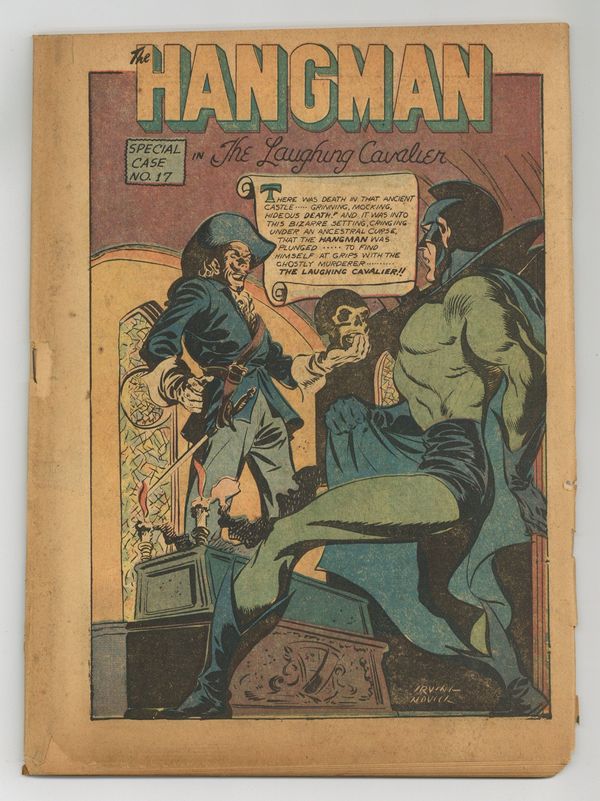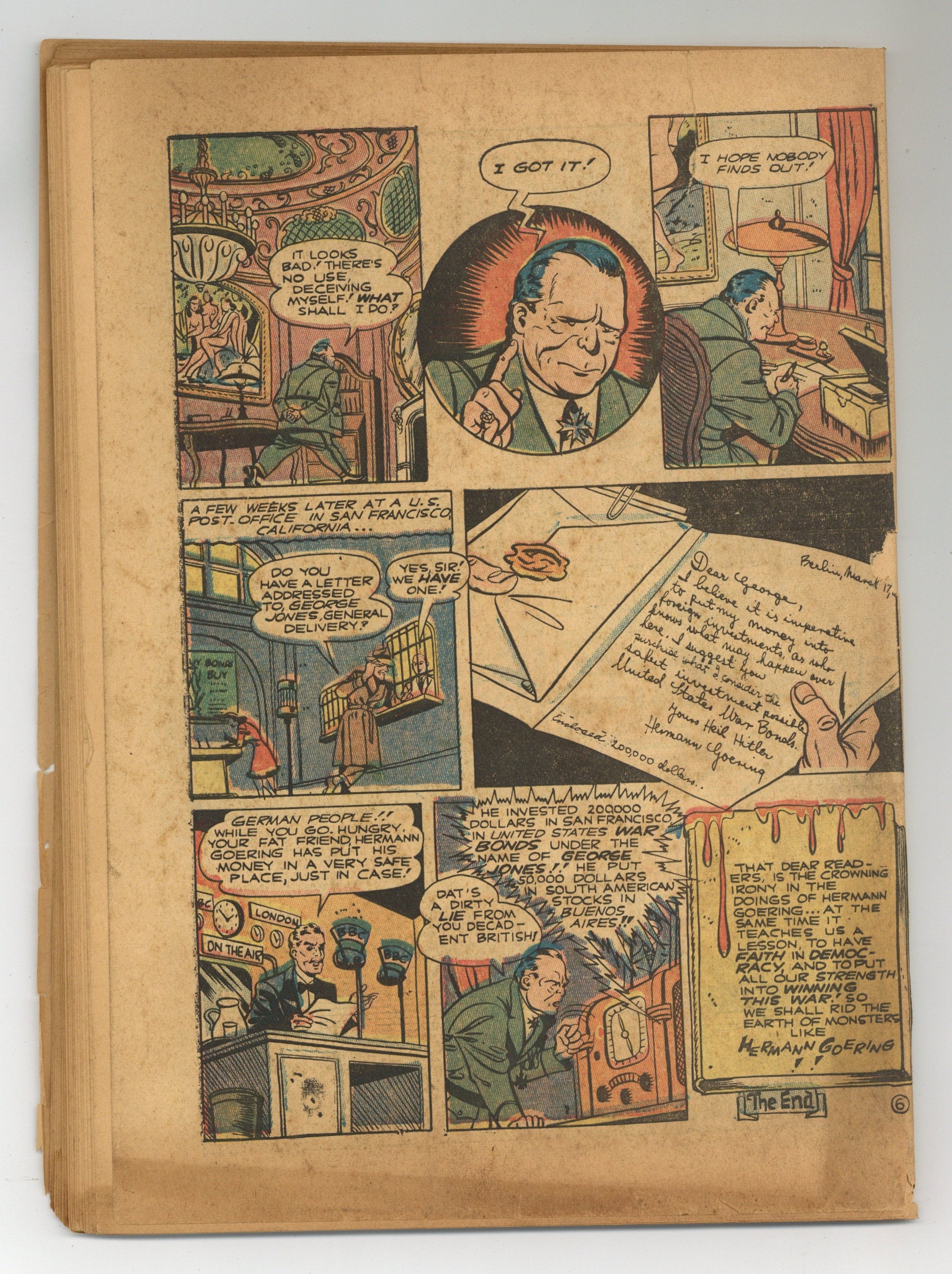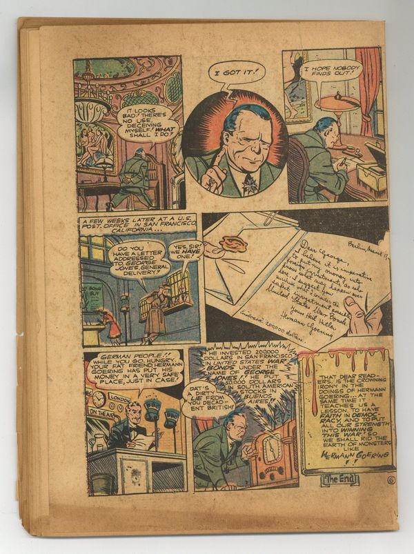 The Hangman in "The Laughing Cavalier" (art by Irv Novick), "Crime Does Not Play" (art by Bob Fuje), and "Murder Wore a Suit" (art by Cooper). Also the Boy Buddies in "Special Case No. 12" (Hitler appearance) and "The Sorcerer's Apprentice!" "Hangman's Hall of Shame: Herman Goering" (art by Paul Reinman). Sahle cover. Cover price $0.10. Grade: Coverless explanation of grade Condition: Used (collectible)
