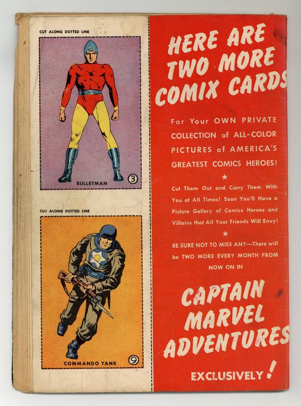 Starts Jan 3 Cover by C.C. Beck. Stories by Otto Binder, Bill Woolfolk, and Al Liederman. Art by C.C. Beck, Ezra Jack Keats, Al Liederman, Marc Swayze and Dave Berg. Superhero action with the original Captain Marvel, better known these days as Shazam. Captain Marvel battles Axis forces in Alaska. Marvel's friend Steamboat encounters a hypnotist who makes him think he can be the next Captain Marvel, in a story with inks by future Mad "Lighter Side" cartoonist Dave Berg. Captain Marvel battles Axis forces in Mexico. Classic WWII propaganda cover by Beck. The Alaskan Adventure; The Trumpet of Doom; The World's Mightiest Mistake; Captain Kid; Captain Marvel in Mexico. 68 pages, Full Color. Cover price $0.10. Grade: GD 2.0 explanation of grade Condition: Used (collectible)