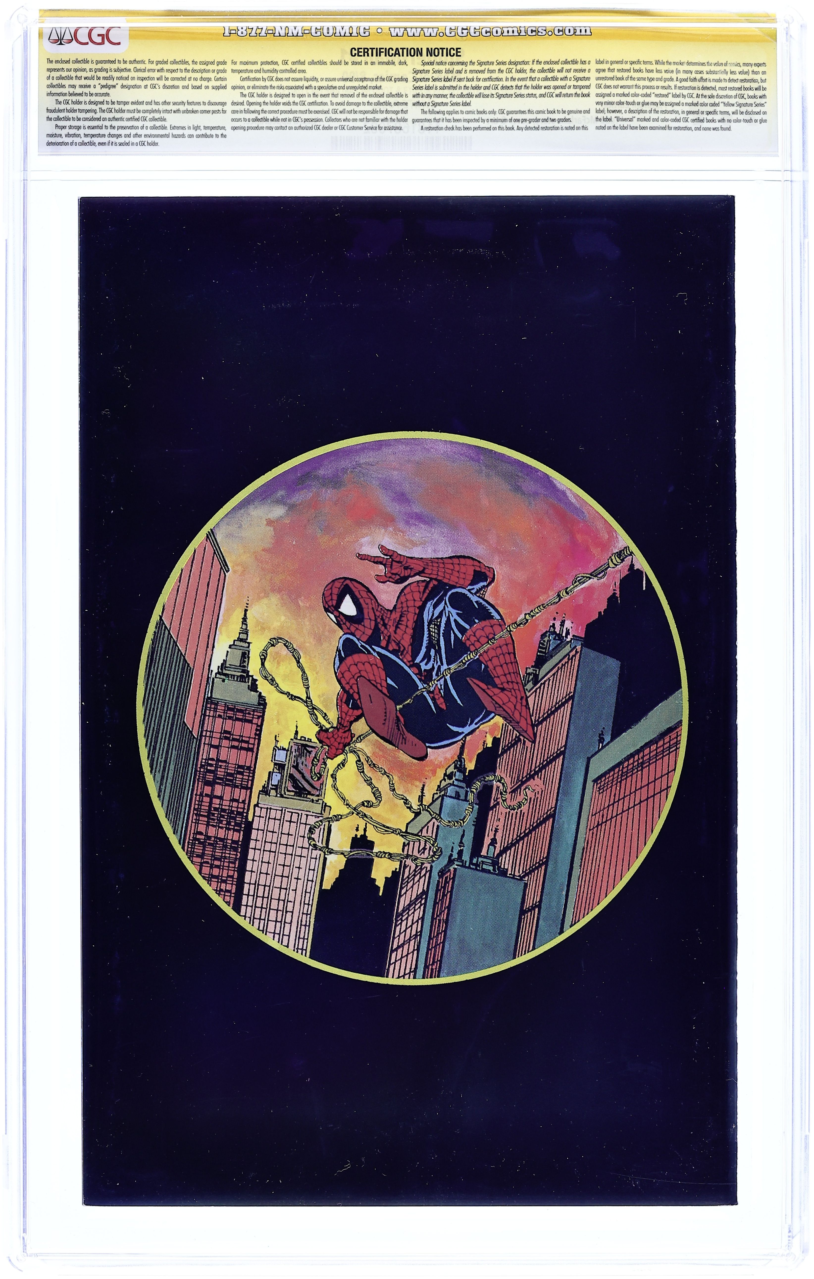 Platinum Edition. Very limited distribution. Todd McFarlane art. The Platinum edition is sometimes confused with other editions of lesser value. The Platinum Cover edition, however, may be identified easily as it has a cardstock cover and no cover price. Other identifiers are the silver ink logo and the light yellow and green background to the art. Grade: CGC 9.4 explanation of grade Condition: Used (collectible)
