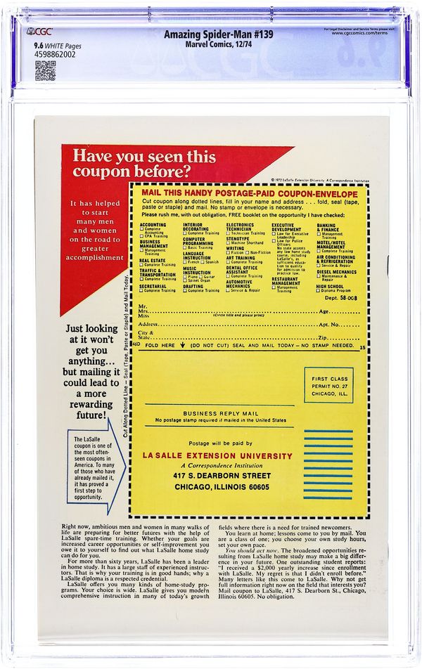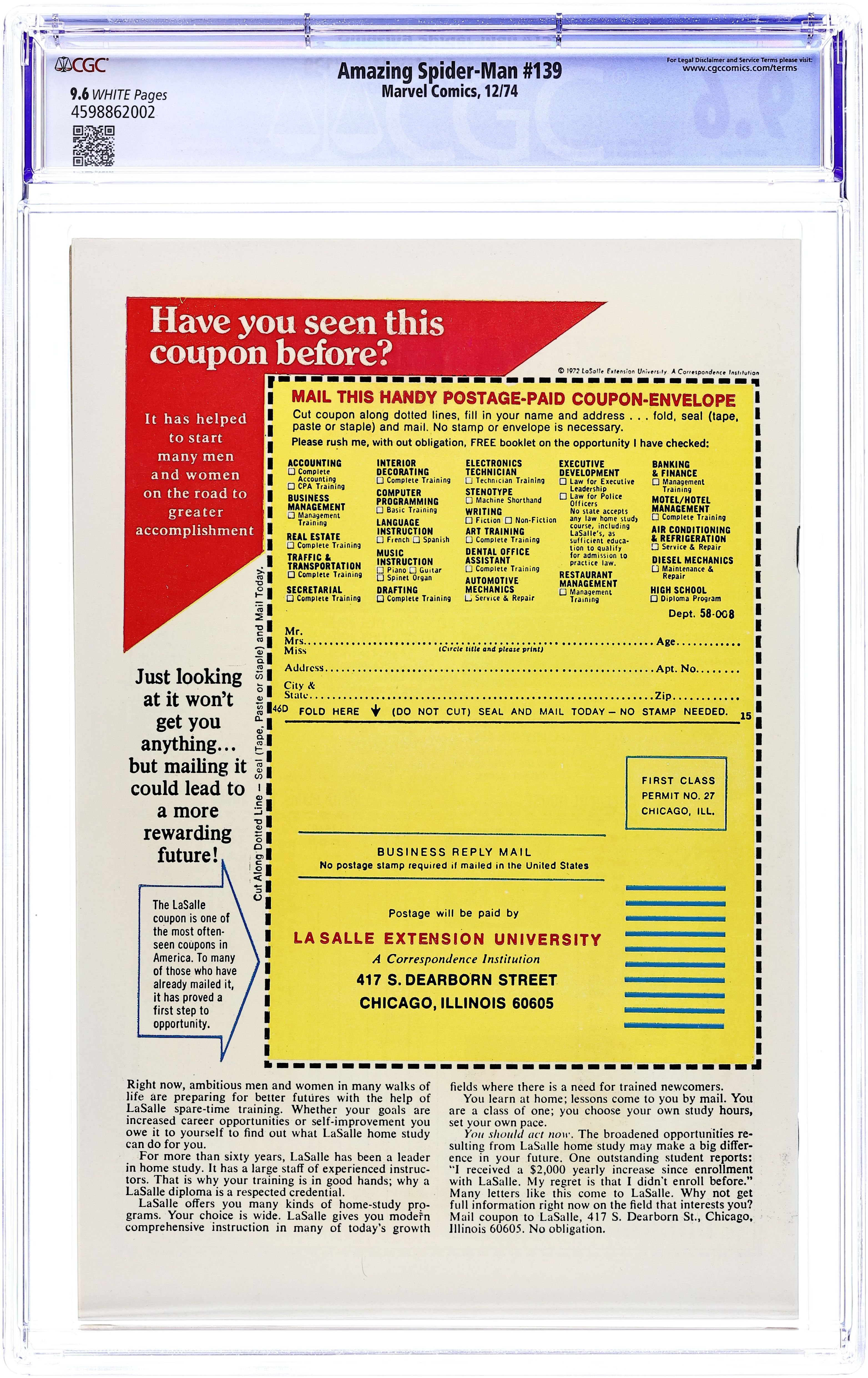 Amazing Spider-Man (1963 1st Series) 139 CGC 9.6