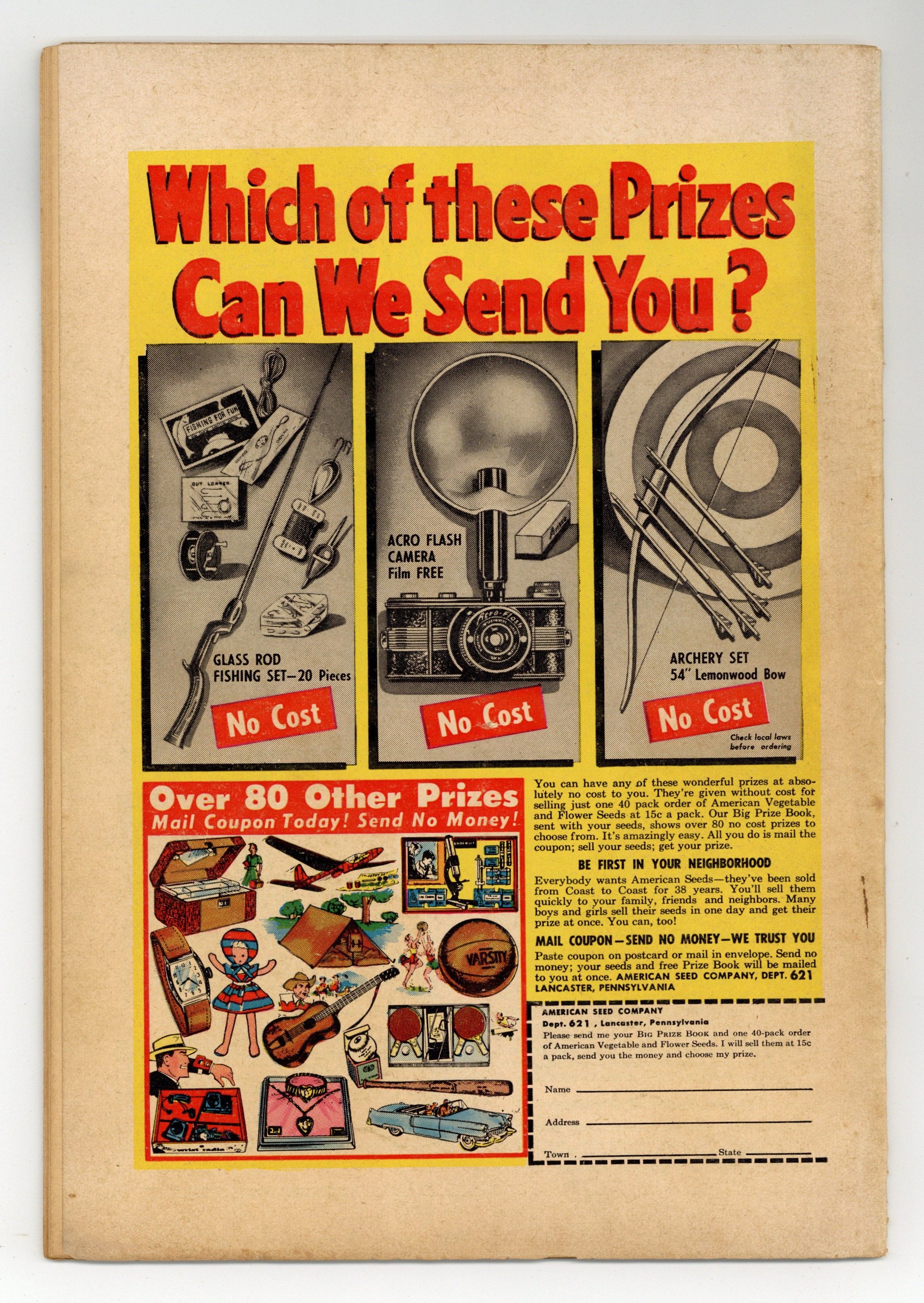 Cover pencils by Curt Swan, inks by Stan Kaye. Superboy's Repeat Performance, script by Otto Binder, art by John Sikela; Superboy is compelled to repeat past super deeds after an encounter with a kryptonite meteor. Little Pete humor page by Henry Boltinoff. A Rival For Aquaman, art by Ramona Fradon; Aquaman meets a mysterious character who can swim at super speed. Varsity Vic humor page by Henry Boltinoff. Magic Tricks You Can Do article. The Cowboy Archers starring Green Arrow, art by George Papp. 36 pages, Full Color. Cover price $0.10. Grade: VG- 3.5 explanation of grade Condition: Used (collectible)