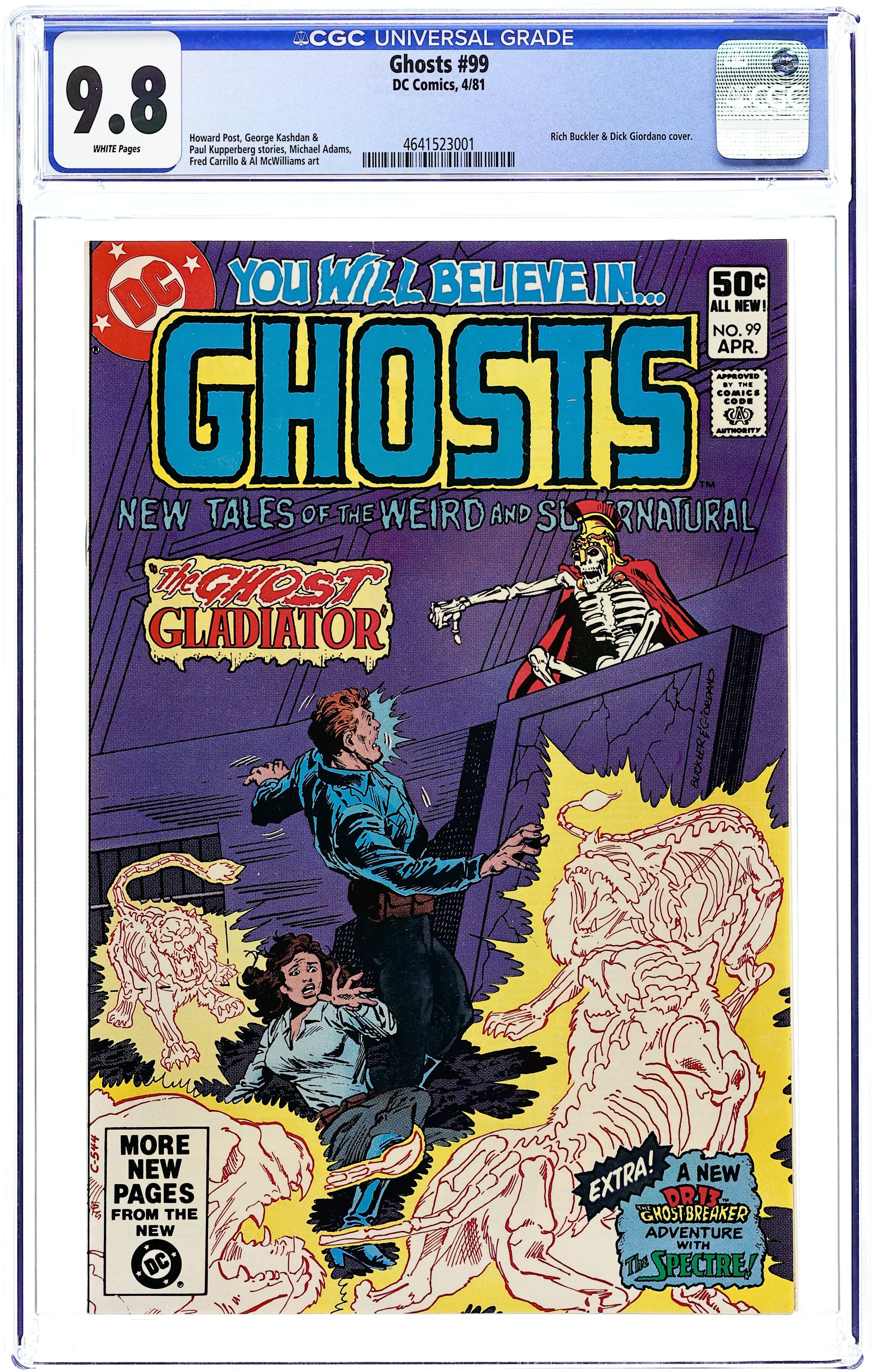 Cover by Rich Buckler & Dick Giordano. Featuring: 1 page intro story "The Files of Dr. Geist" drawn by Tony DeZuniga; 8 page story "Till Death Do Us Join!" written by Howard Post and drawn by Alden McWilliams; 1 page story "Ghost Giggles" by Dave Manak; 6 page story "The Ghost Gladiator" written by George Kashdan and drawn by Fred Carrillo; 8 page Dr. 13 Ghost-Breaker story "Death...and The Spectre" written by Paul Kupperberg and drawn by Michael Adams & Tony DeZuniga; 1 page story "Haunted Happenings" by Dave Manak. Cover price $0.50. Grade: CGC 9.8 explanation of grade Condition: Used (collectible)
