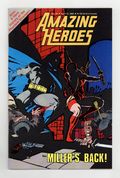 In this issue: Frank Miller interview (guest appearance by Bill Sienkiewicz); Hero History of the Phantom Stranger; Star Hawks by Gil Kane and Roger McKenzie - "Deathsearch" concludes. Plus: Editorial; Newsflashes; Coming Distractions; The Comic Book Heroes book excerpt; The Golden Age Directory - JSA and the Marvel Family; Comics in Review by R.A. Jones - The Badger, The Shadow War of Hawkman, Captain Britain, Peter Porker the Spectacular Spider-Ham, Somerset Holmes, Moonshadow; Amazing Readers. Batman/Elektra cover by Frank Miller and Lynn Varley. Cover price $1.95. Grade: FN 6.0 explanation of grade Condition: Used (collectible)