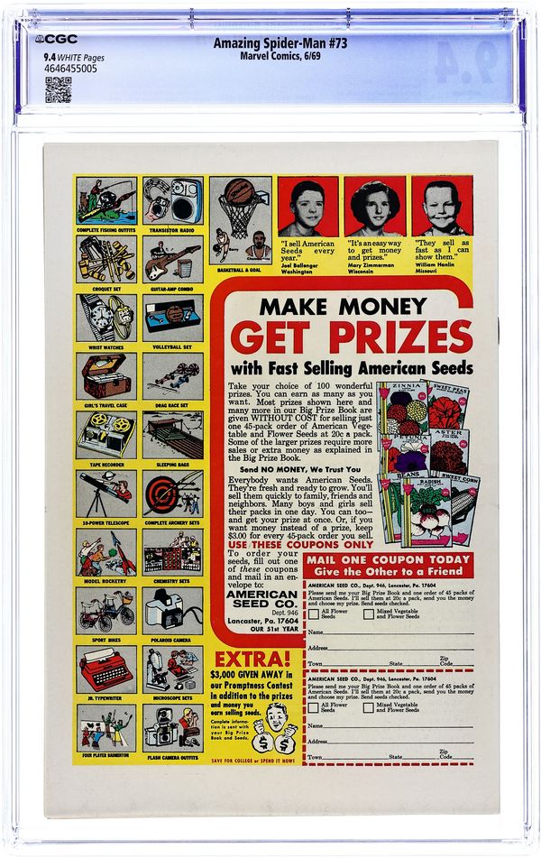 Tags: Marvel Legacy Numbering: Amazing Spider-Man (part 73), Spider-ManAmazing Spider-Man (1963 1st Series) 73 CGC 9.4