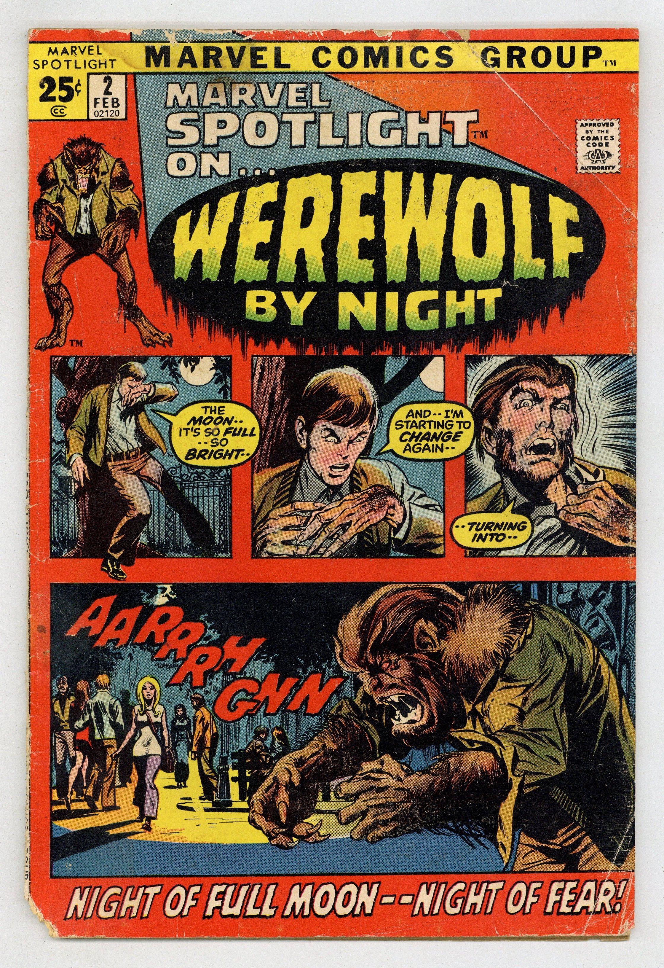 52-page giant. Origin and first appearance of Werewolf By Night. Cover pencils by Neal Adams, inks by Tom Palmer. First Night, script by Roy Thomas (plot); Jean Thomas (plot), and Gerry Conway (script), art by Mike Ploog; Jack learns of the family curse on his eighteenth birthday from his mother on her deathbead; Jack begins to believe that his step-father had his mother killed. House ad for Venus, art by Bill Everett. Where Gargoyles Dwell! starring Venus, script and art by Bill Everett. 52 pages, full color. Cover price $0.25. Grade: FR 1.0 explanation of grade Condition: Used (collectible)
